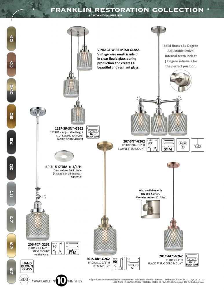 The Franklin Restoration collection is comprised of heavy cast components that give the fixture a heavy Industrial look and feel. We offer the fixture in 10 finishes with a Bare Bulb look or with over 100 possible metal and glass shade options that can cha