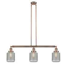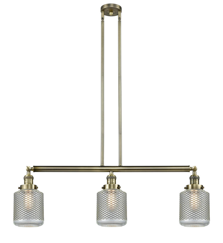 Stanton - 3 Light - 39 inch - Antique Brass - Clear Wire Mesh Shade - Stem Hung - Adjustable Island Light