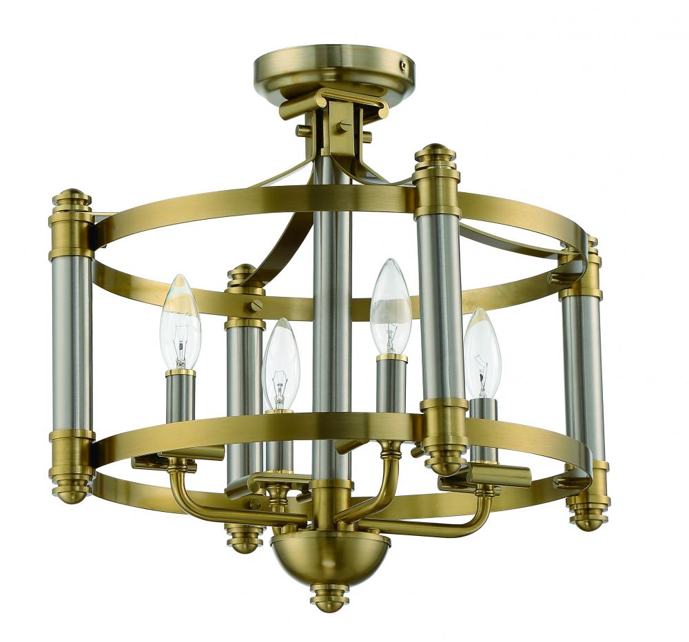 Stanza 4 Light Semi Flush in Brushed Polished Nickel/Satin Brass