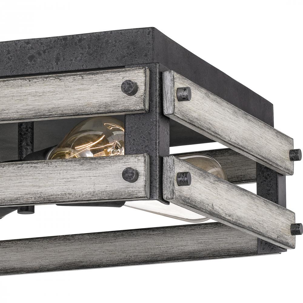 The Starling collections dual tone frame emulates a wooden crate, with a painted White Maple finish and Distressed Iron accents. This fixture will work well with both farmhouse and industrial style homes.
