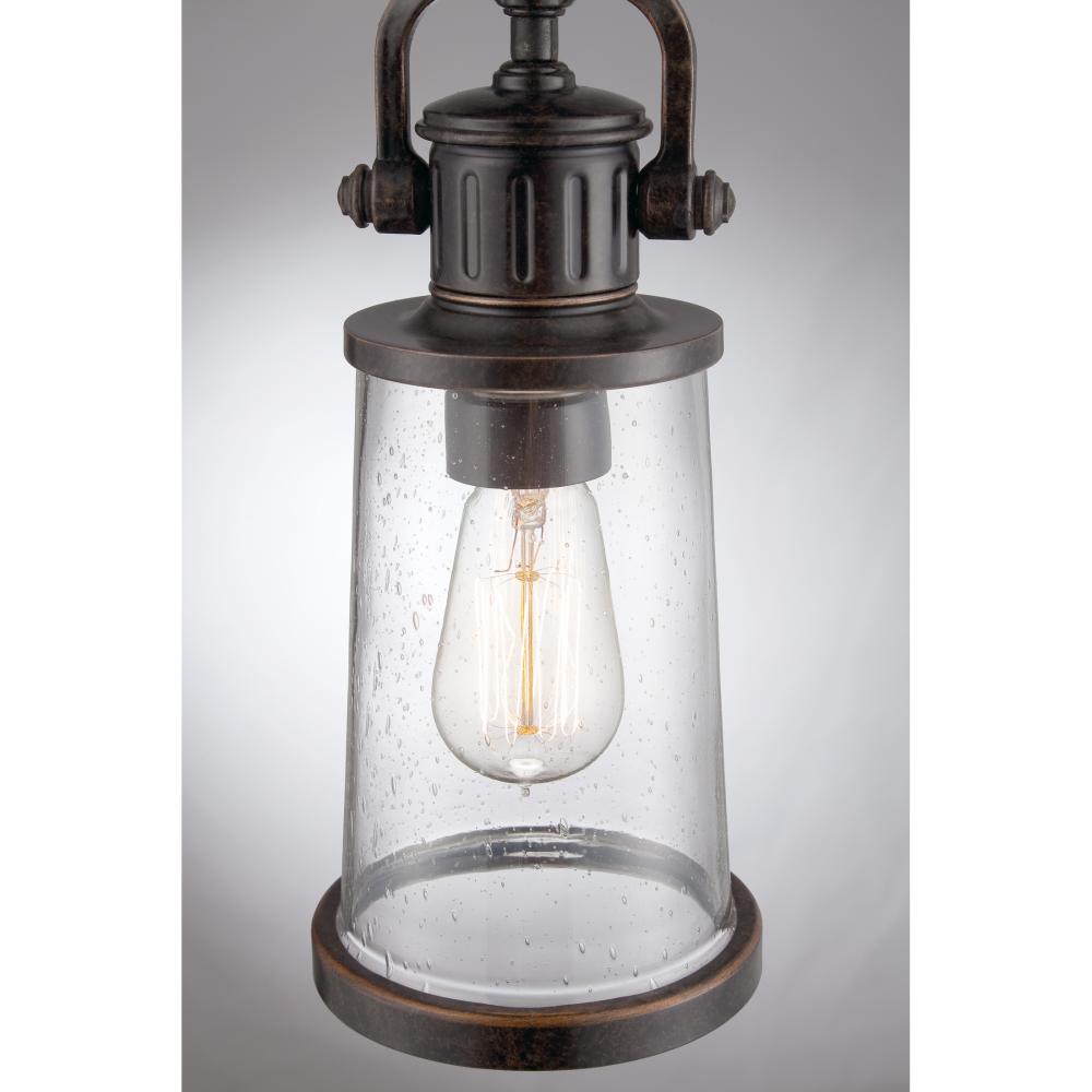 This fixture gives the exterior of your home both beauty and an industrial sense of design. It features a vintage bulb for a historic look and is enhanced by the clear seedy glass. The Imperial Bronze finish completes the look.
