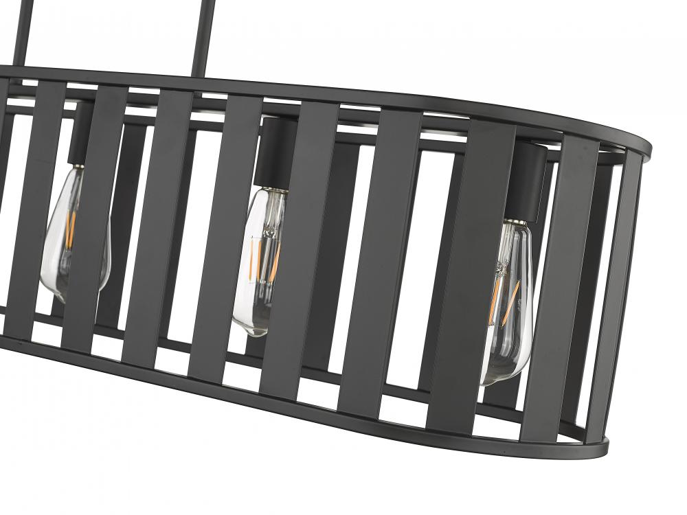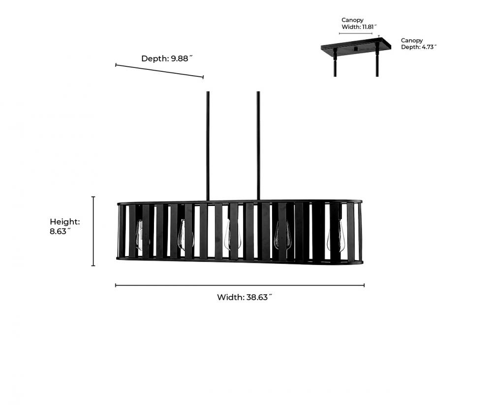Slender and sophisticated, the Stella Collection of Chandeliers adds a bright and airy impact to any gathering space. The slatted metal shade in drum-style or rectangular design allows for dappled light play and is artfully suspended by a series of slender rods. Available in 5-light or 6-light options and finished in either antique silver or matte black, these fixtures are the definition of understated elegance.