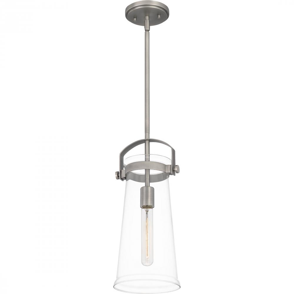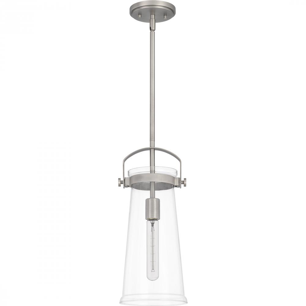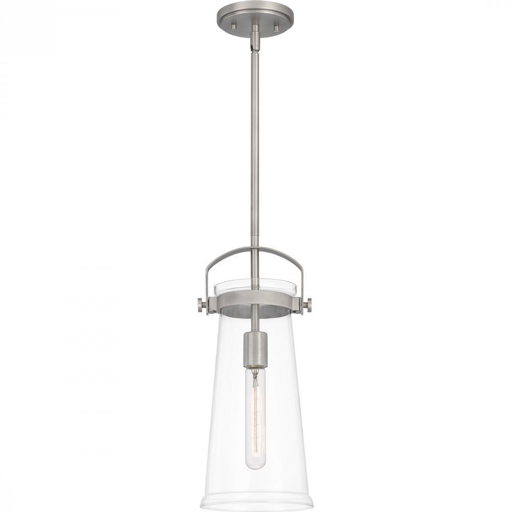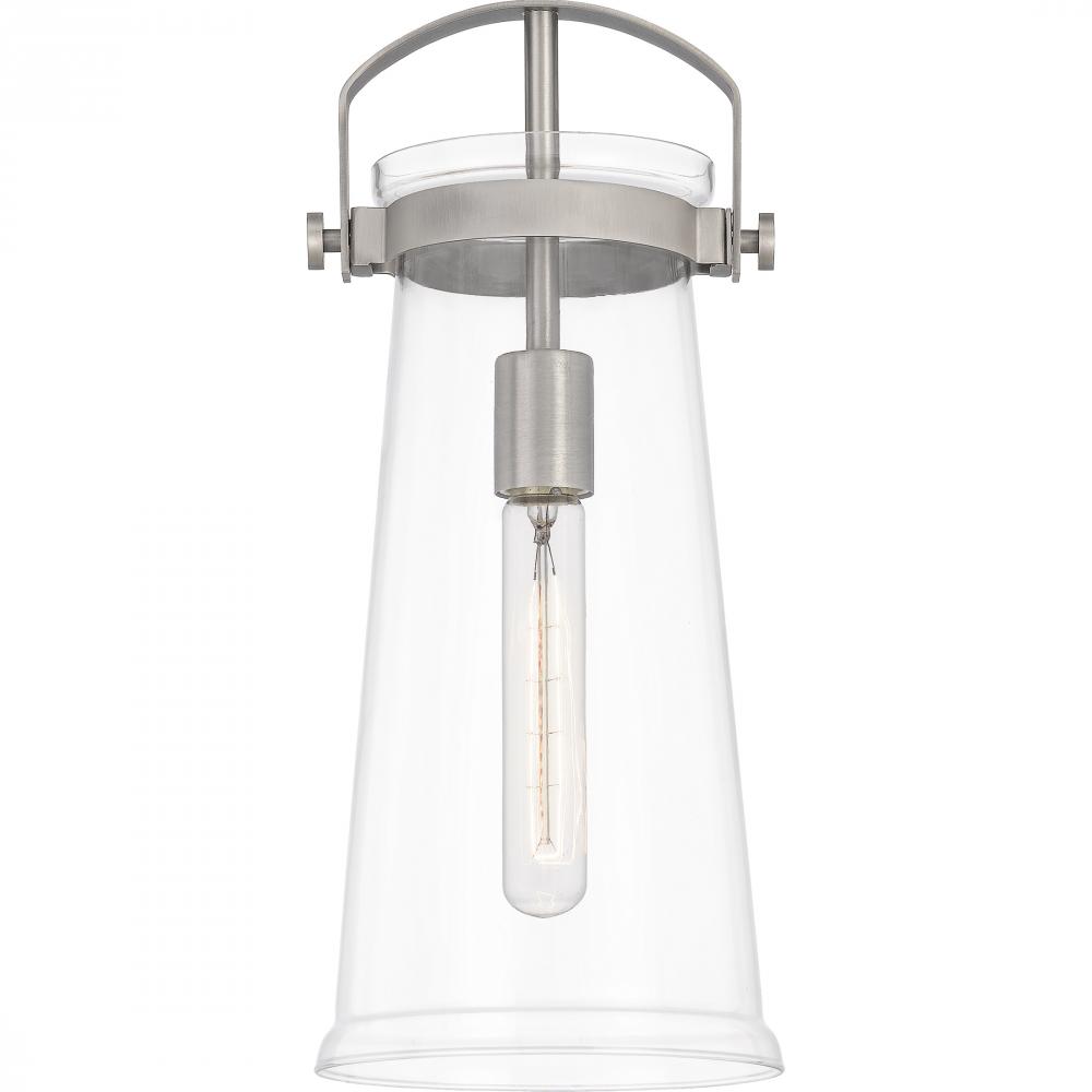 The transitional style of the Stella collection will blend seamlessly into your home. This fixture comes in an Antique Nickel, Weathered Brass, or Western Bronze finish and two shade options. The industrial style hardware paired with the clear glass shade