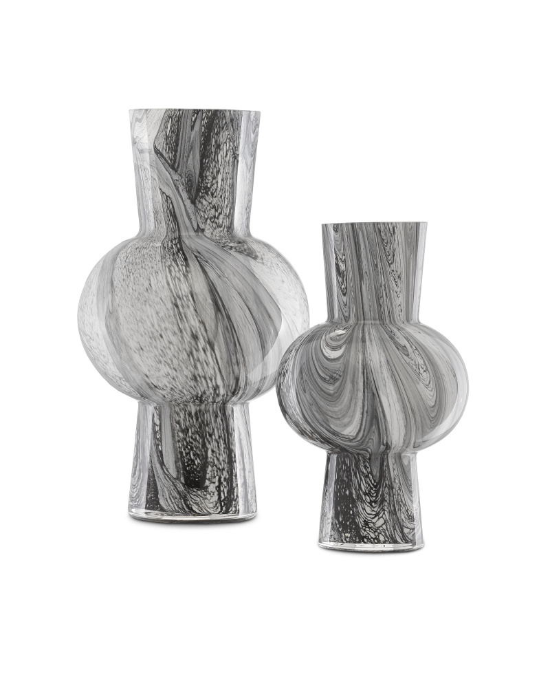 Made of mouth-blown glass, our Stormy Sky Glass Vase Set includes two vases with swirling black and white surfaces. The modern beaker shape makes these black and white vases seriously contemporary in style.