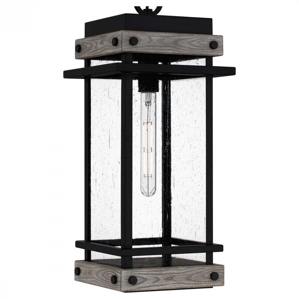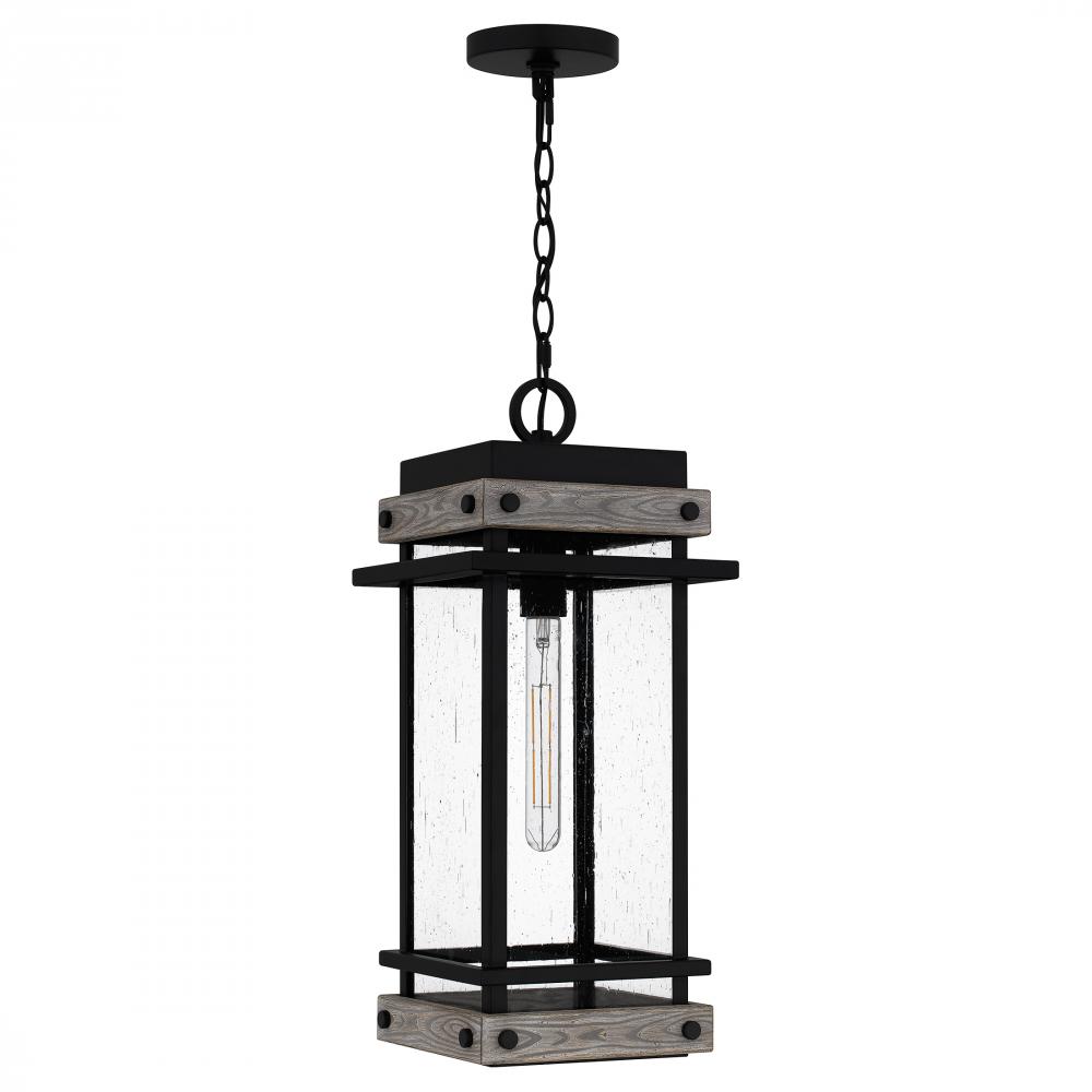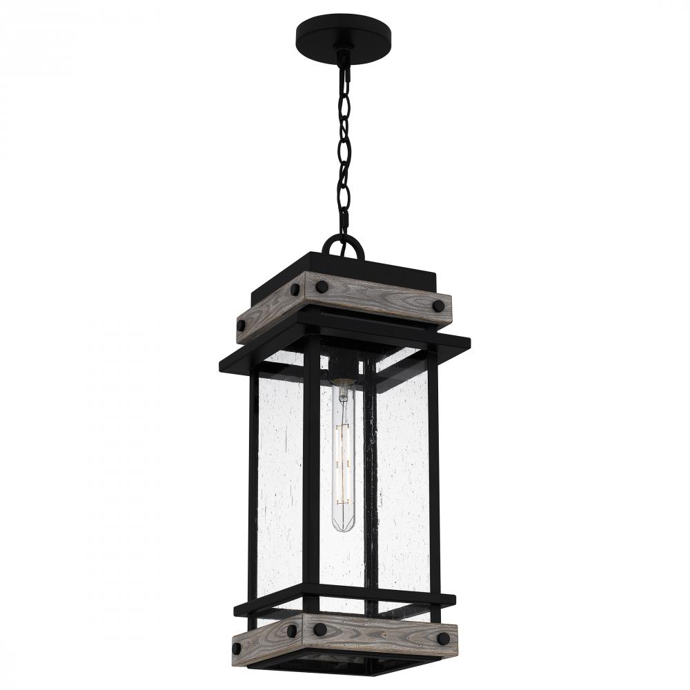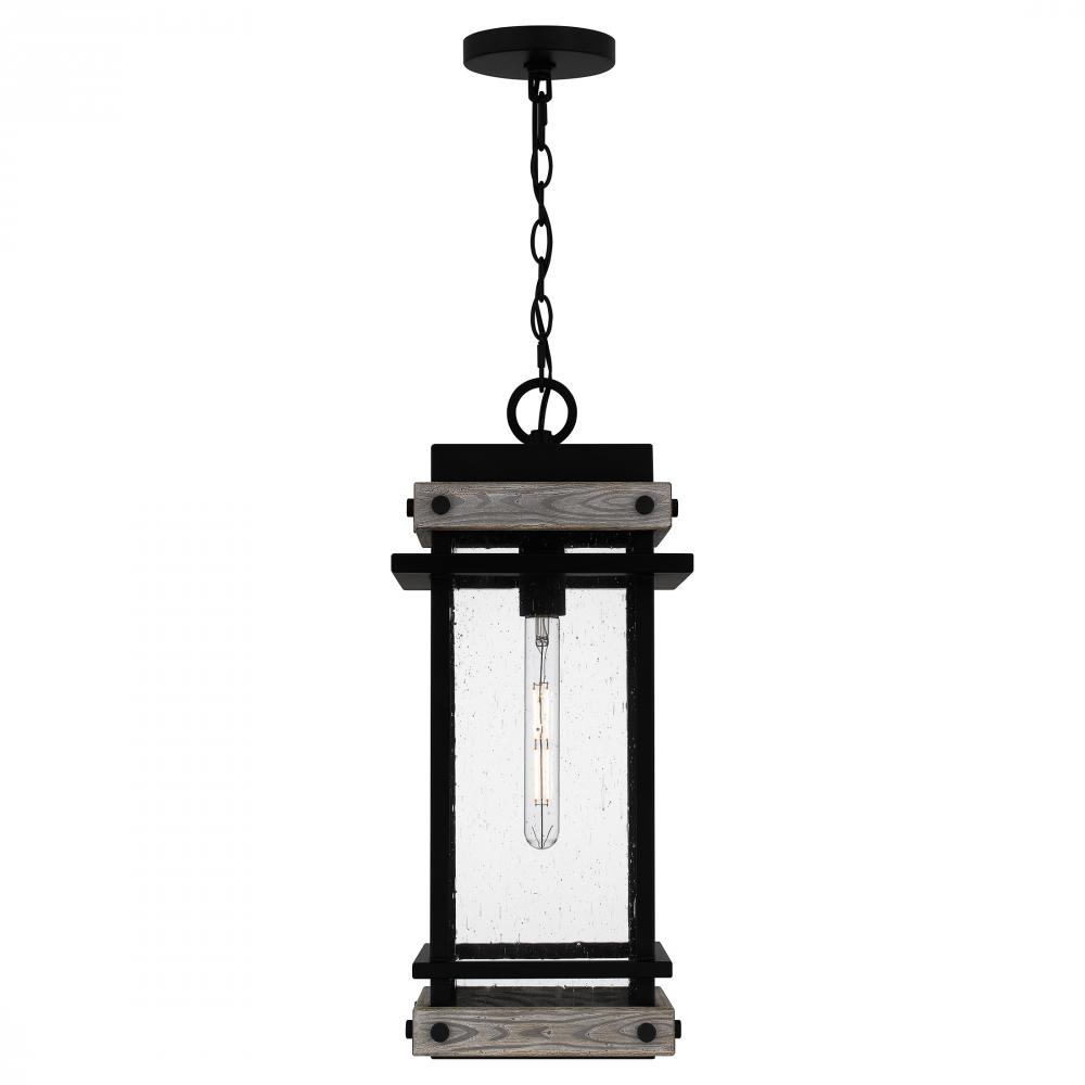 Create a lasting impression with the Strader mini pendant light. A matte black frame and distressed wood accents pair with clear seedy glass panels for a farmhouse-ready look. Also available as an outdoor hanging lantern or in various sizes of wall lantern