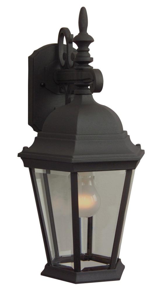 The Craftmade Straight Glass exterior collection offers a clean tapered hexagon frame in a textured matte black finish surrounding panels of clear beveled glass.