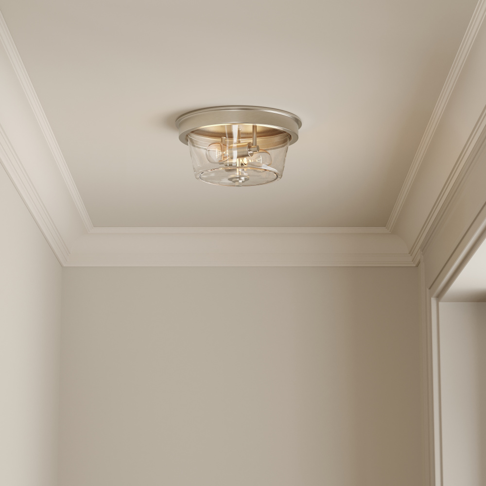 Revamp and illuminate any hallway, living room, or bedroom with the stylish 13" Strayhan flushmount.