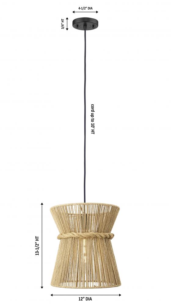 Sutton - 1 Light - 12 inch - Natural Sutton Rope - Cord hung - Pendant
