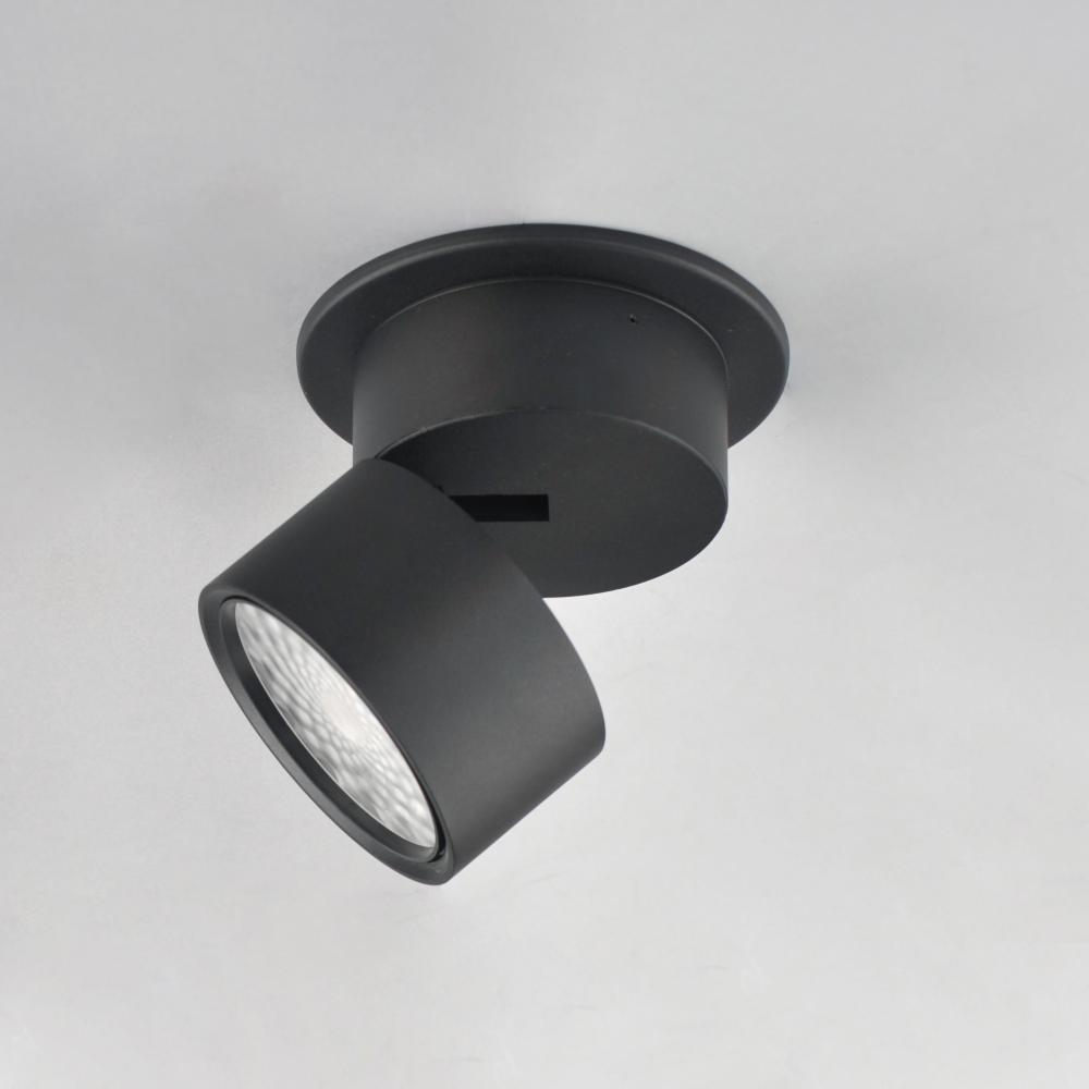 Inconspicuously recessed within its cylindrical house, an extending arm transforms this surface mounted light fixture into an adjustable spotlight. Simply unthread the top half along the seam to extend the frame length and swing the fixture into position.