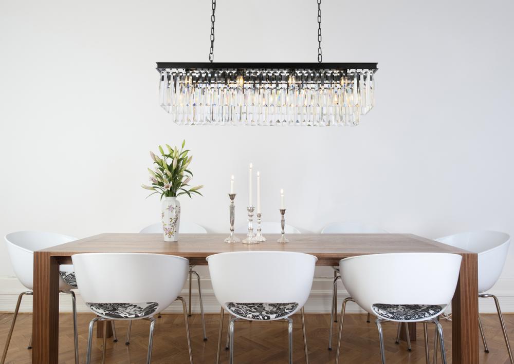 Bring the splendor of the ballroom into your home with a sparkling Sydney fixture. Stunning in foyers, dining rooms, or stairwells, the Sydney collection brings to mind the glamour of the Roaring Twenties. Features glimmering tiers of royal-cut clear, golden-teak, or Silver-shade crystals. In Matte Black or polished-nickel finishes, this sturdy, yet delicate, pendant lamp will be the perfect centerpiece for any décor.
