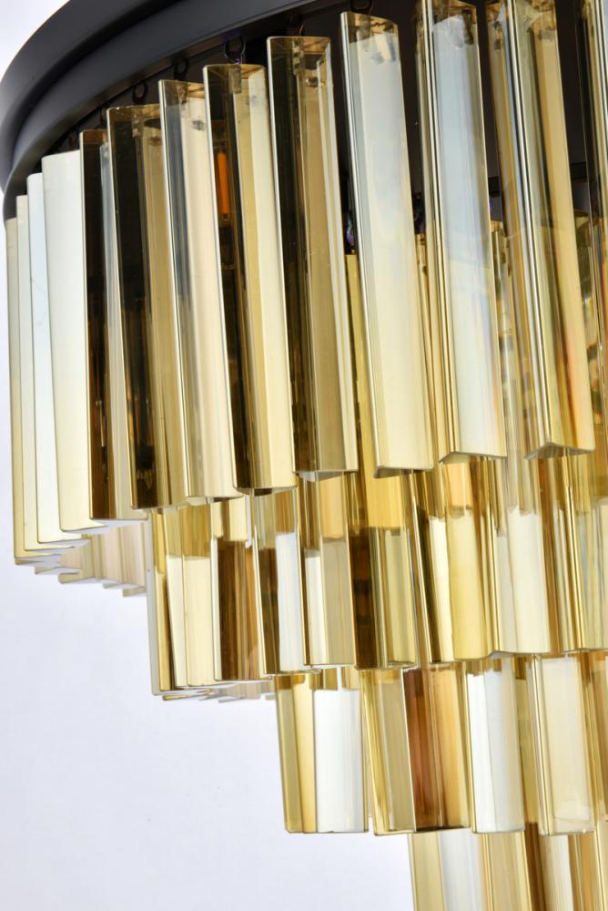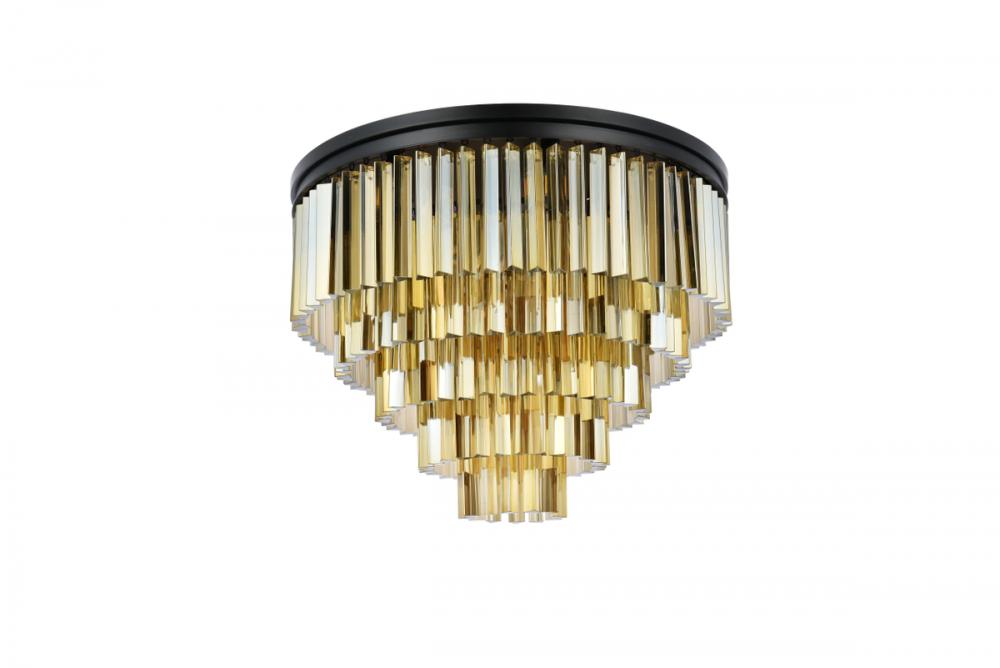 Sydney 17 light Matte Black Flush Mount Golden Teak (Smoky) Royal Cut Crystal