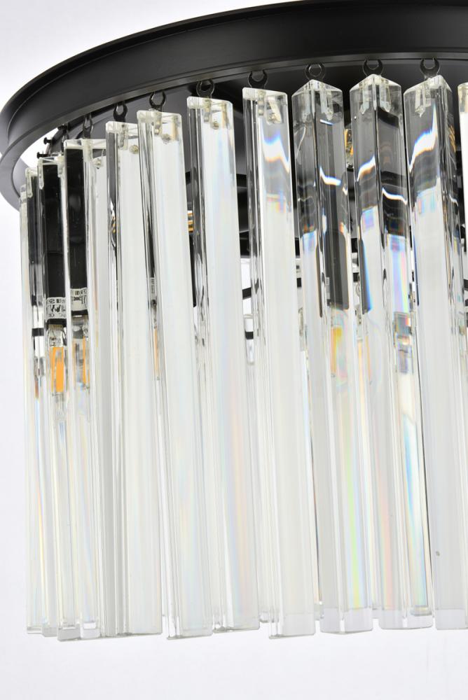 Timeless splendor and modern refinement are brought together in flush-mount Sydney fixtures. Dazzling in dining rooms, staircases, or hallways, the Sydney collection flaunts stunning tiers of royal-cut crystals in clear, golden teak, or Silver shade. A circular Matte Black or polished-nickel finished steel frame adds understated charm to this stunning flush-mount lamp.