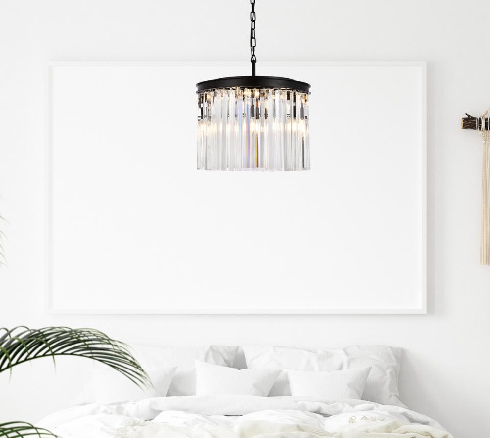 Bring the splendor of the ballroom into your home with a sparkling Sydney fixture. Stunning in foyers, dining rooms, or stairwells, the Sydney collection brings to mind the glamour of the Roaring Twenties. Features glimmering tiers of royal-cut clear, golden-teak, or Silver-shade crystals. In Matte Black or polished-nickel finishes, this sturdy, yet delicate, pendant lamp will be the perfect centerpiece for any décor.