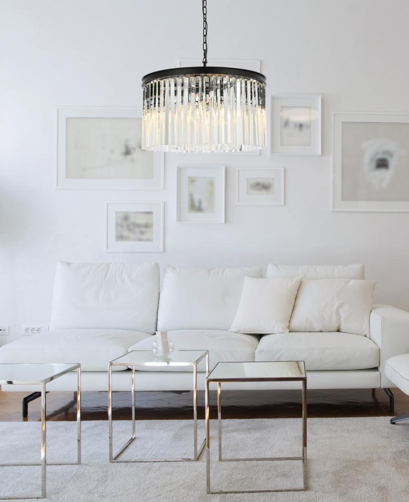 Bring the splendor of the ballroom into your home with a sparkling Sydney fixture. Stunning in foyers, dining rooms, or stairwells, the Sydney collection brings to mind the glamour of the Roaring Twenties. Features glimmering tiers of royal-cut clear, golden-teak, or Silver-shade crystals. In Matte Black or polished-nickel finishes, this sturdy, yet delicate, chandelier will be the perfect centerpiece for any décor.