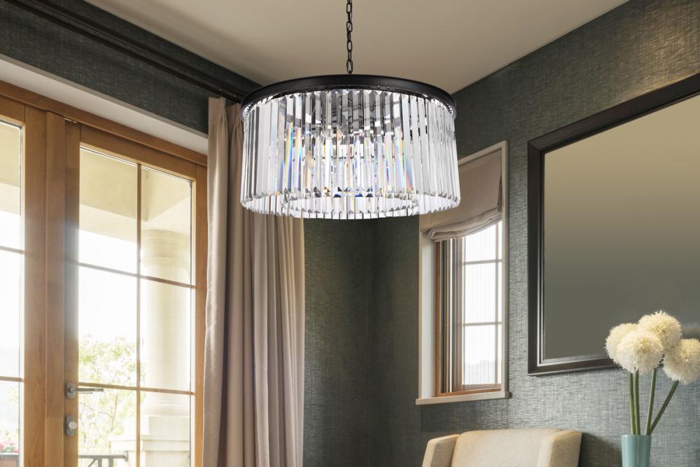 Bring the splendor of the ballroom into your home with a sparkling Sydney fixture. Stunning in foyers, dining rooms, or stairwells, the Sydney collection brings to mind the glamour of the Roaring Twenties. Features glimmering tiers of royal-cut clear, golden-teak, or Silver-shade crystals. In Matte Black or polished-nickel finishes, this sturdy, yet delicate, chandelier will be the perfect centerpiece for any décor.