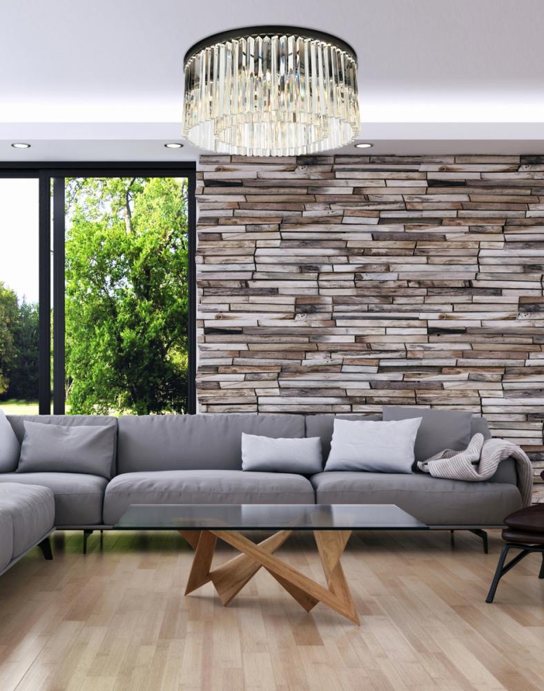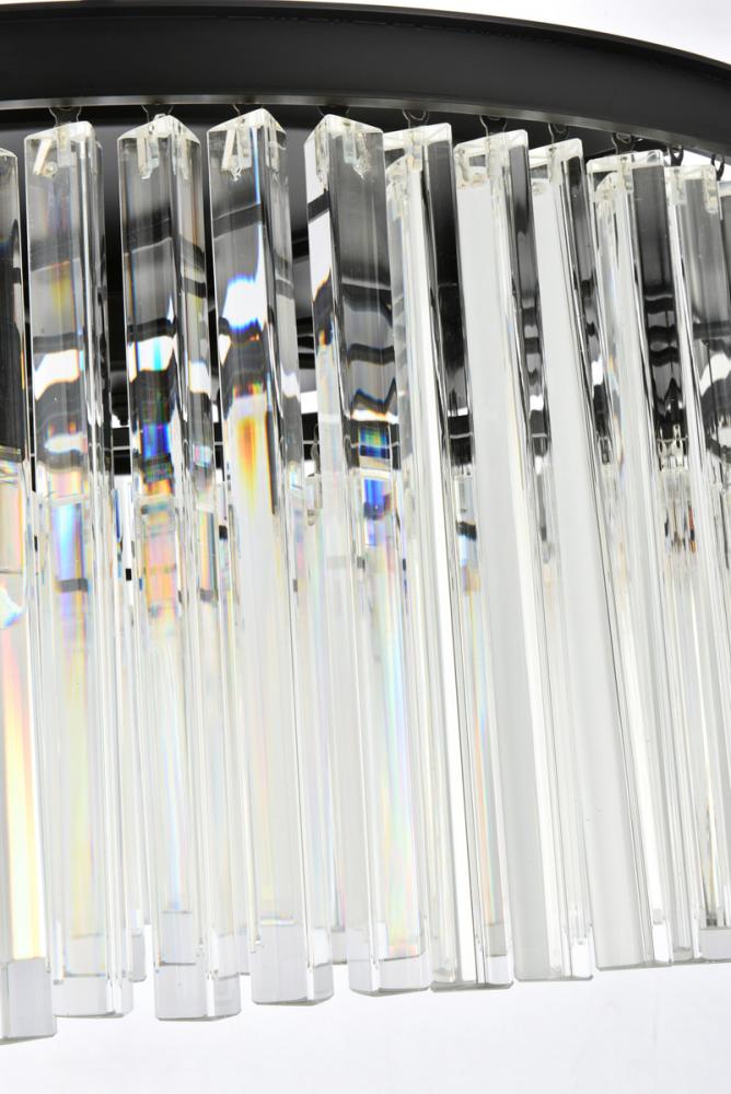 Timeless splendor and modern refinement are brought together in flush-mount Sydney fixtures. Dazzling in dining rooms, staircases, or hallways, the Sydney collection flaunts stunning tiers of royal-cut crystals in clear, golden teak, or Silver shade. A circular Matte Black or polished-nickel finished steel frame adds understated charm to this stunning flush-mount lamp.