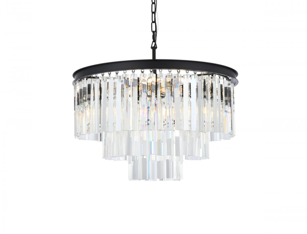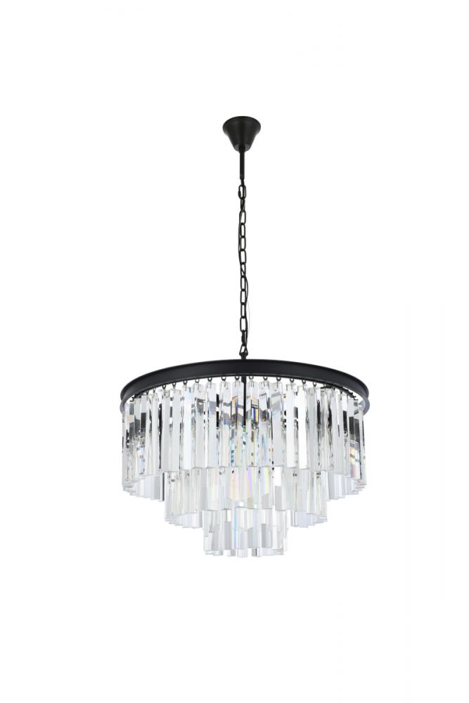 Elegant 1201D20MB/RC - Sydney 9 light Matte Black Chandelier Clear Royal Cut Crystal