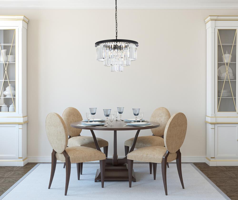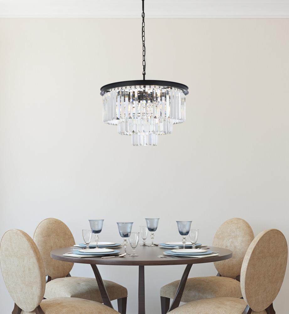 Bring the splendor of the ballroom into your home with a sparkling Sydney fixture. Stunning in foyers, dining rooms, or stairwells, the Sydney collection brings to mind the glamour of the Roaring Twenties. Features glimmering tiers of royal-cut clear, golden-teak, or Silver-shade crystals. In Matte Black or polished-nickel finishes, this sturdy, yet delicate, chandelier will be the perfect centerpiece for any décor.