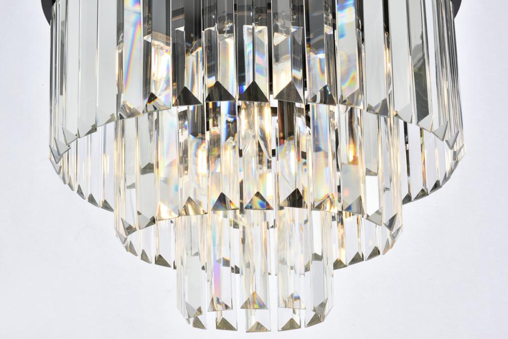 Timeless splendor and modern refinement are brought together in flush-mount Sydney fixtures. Dazzling in dining rooms, staircases, or hallways, the Sydney collection flaunts stunning tiers of royal-cut crystals in clear, golden teak, or Silver shade. A circular Matte Black or polished-nickel finished steel frame adds understated charm to this stunning flush-mount lamp.