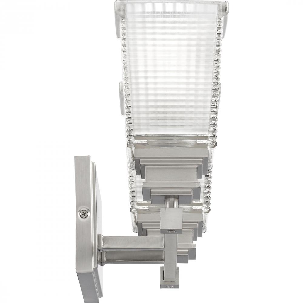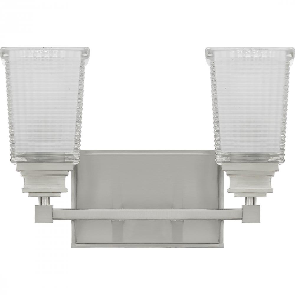 The transitional style of the Abbott collection is the perfect addition to any bathroom. Tiered cast fitters add just the right amount of detail. A Brushed Nickel finish with clear prismatic etched glass shades create a clean and simple fixture.