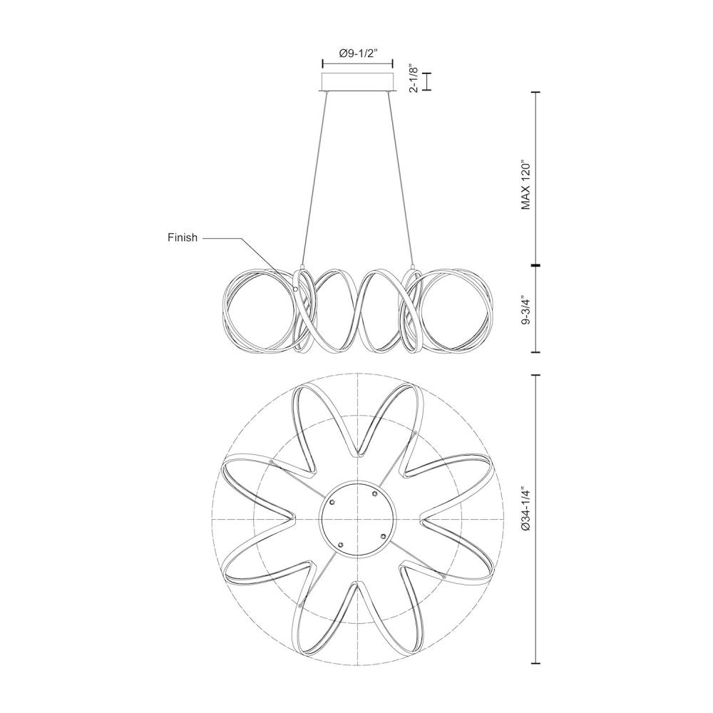 Kuzco Lighting CH93934-AS - Synergy 34-in Antique Silver LED Chandeliers