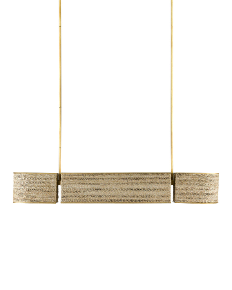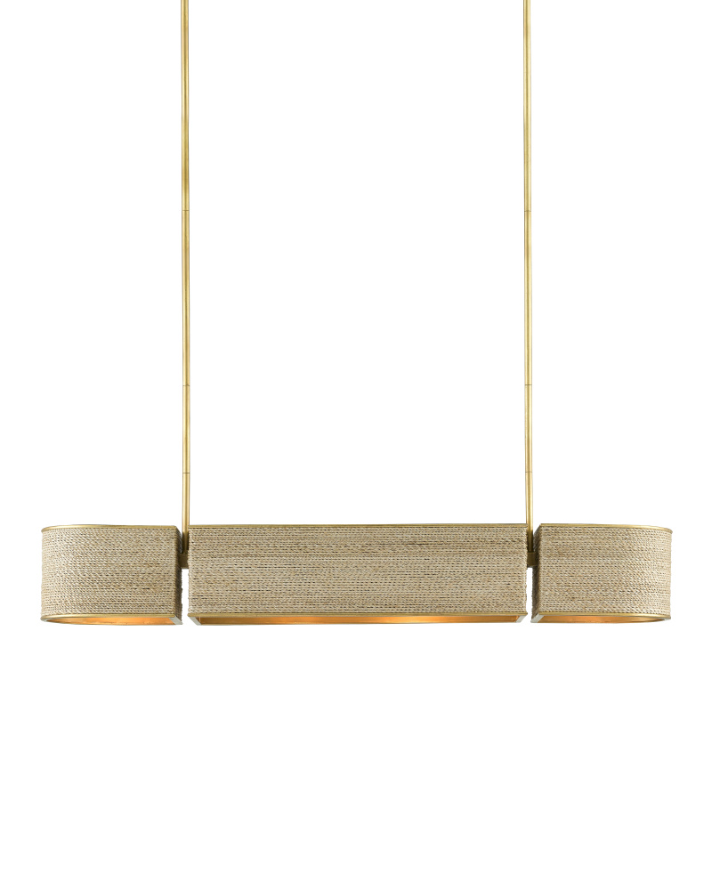 The Tenby Oval Chandelier was designed to appear as though it has three floating components. This rope chandelier is constructed entirely of metal, covered in a natural rope/twine material, and all exposed metal is finished in gilded gold. It has a very warm and natural feeling while offering a modern style. Adjustable from 13.5" to 55.5" with use of included chain/rod kit/cable. If your space calls for a longer drop, additional chain/rods/cable is available for purchase.