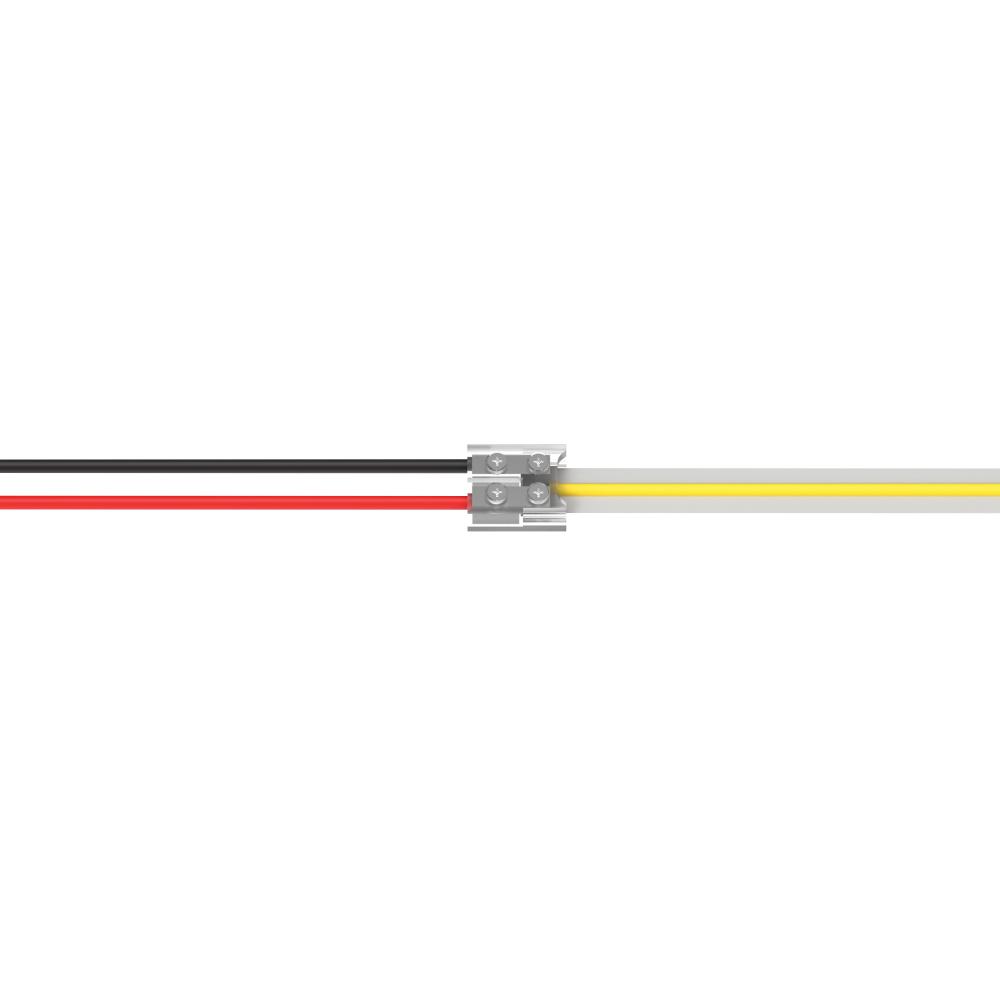 The terminal block connects the COB LED tape light to (2) wires (18AWG max.). Can be used as a power feed or jumper.