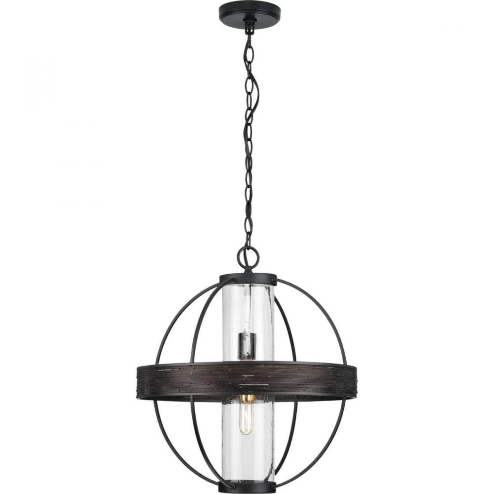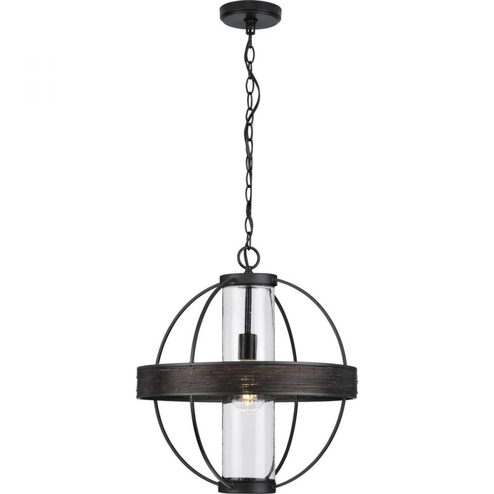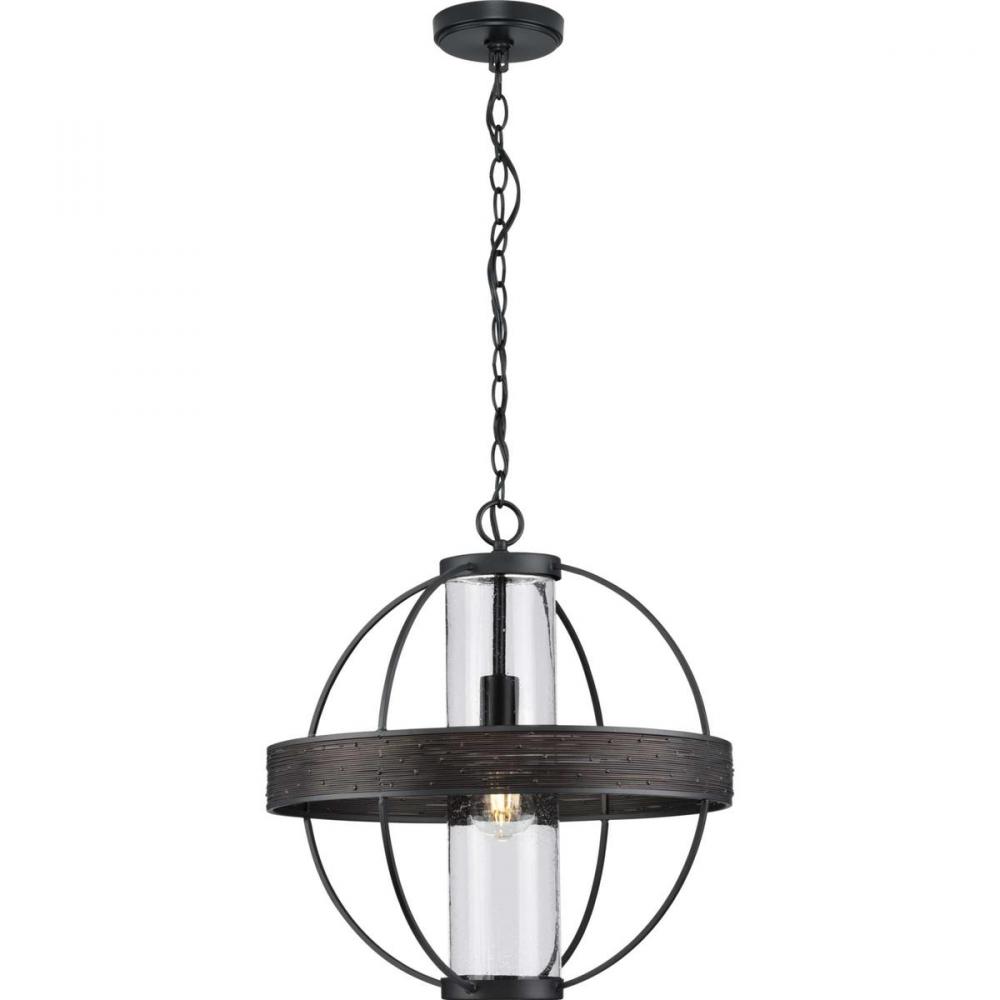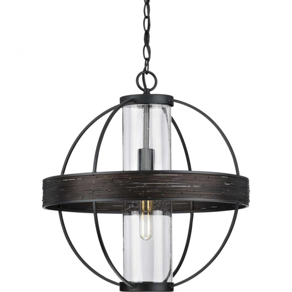 Progress P550111-31M - Terrace Collection One-Light Matte Black Clear Seeded Glass Global Outdoor Hanging Light