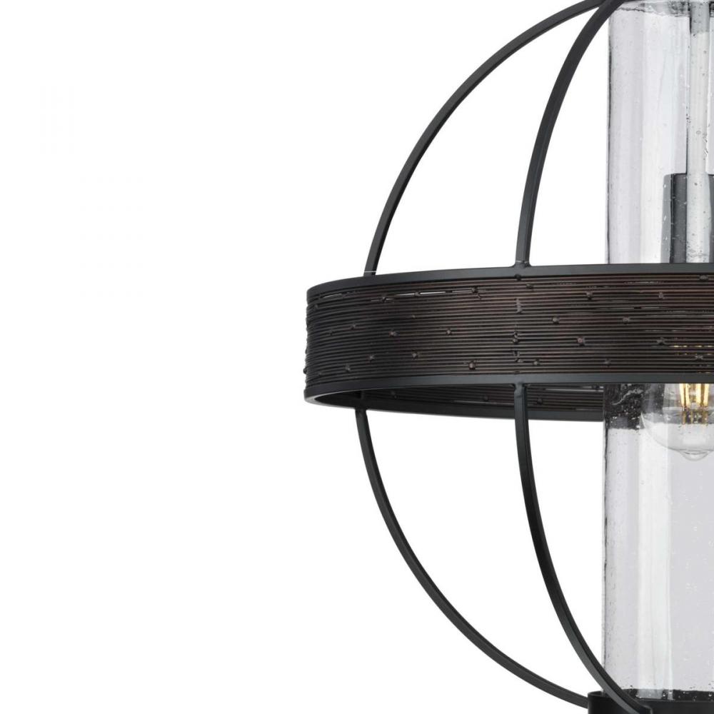 Terrace Collection One-Light Matte Black Clear Seeded Glass Global Outdoor Hanging Light