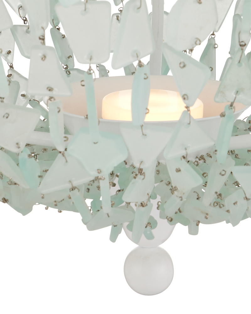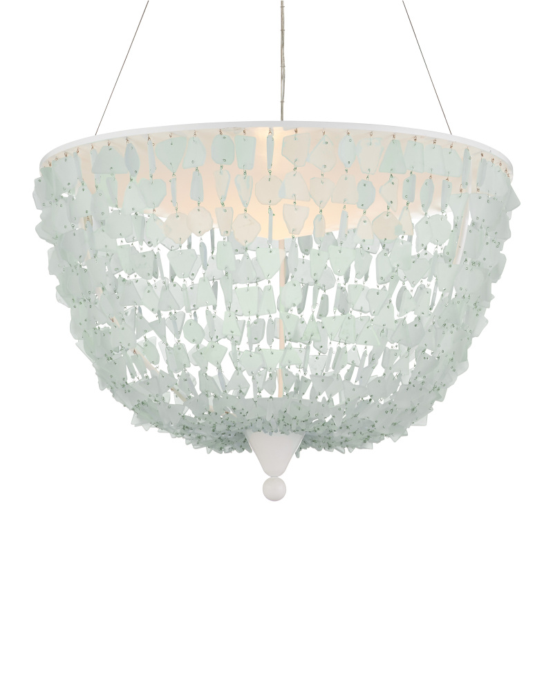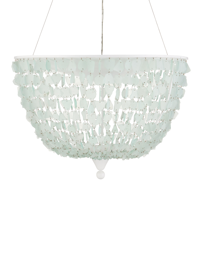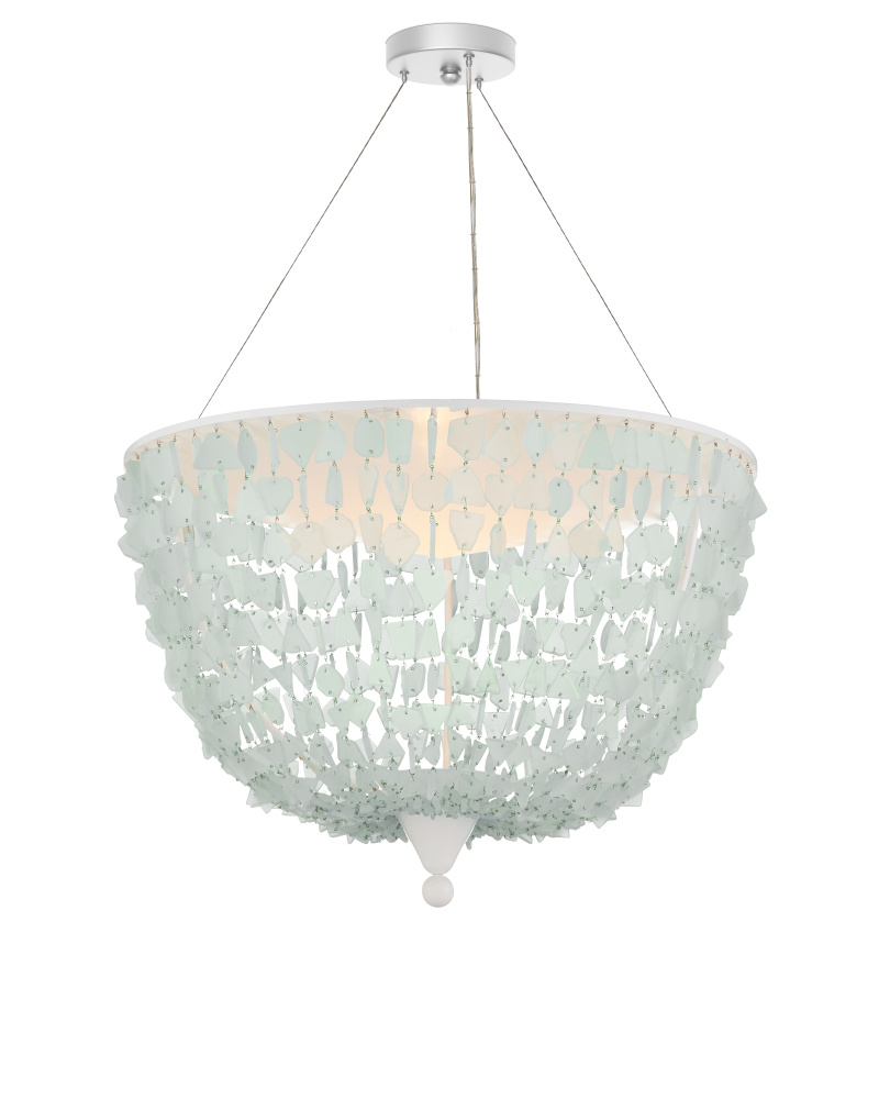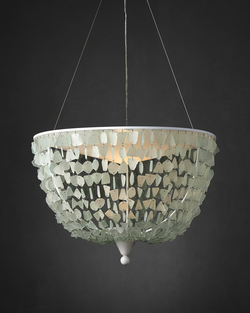 The inverted dome shape of the Thalassa Pendant becomes luminous when it is strung with seaglass. The painstaking patience it takes to assemble a fixture like this makes it an artisanal piece. The Sugar White finish on the frame and the aircraft cable from which it hangs make this a light and airy composition that will look beautiful in a contemporary setting or a room with a coastal aesthetic. Adjustable from 42" to 160" with use of included chain/rod kit/cable. If your space calls for a longer drop, additional chain/rods/cable is available for purchase.