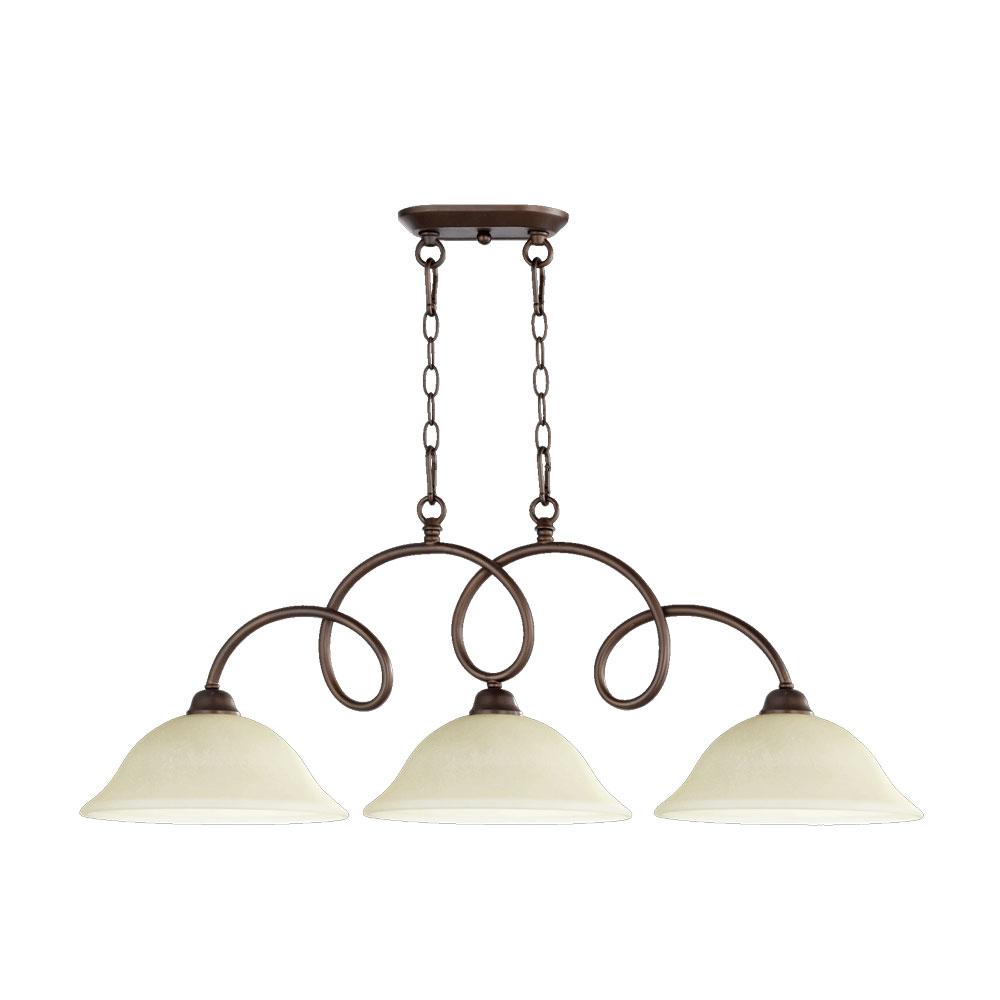 Three Light Oiled Bronze Amber Scavo Glass Island Light
