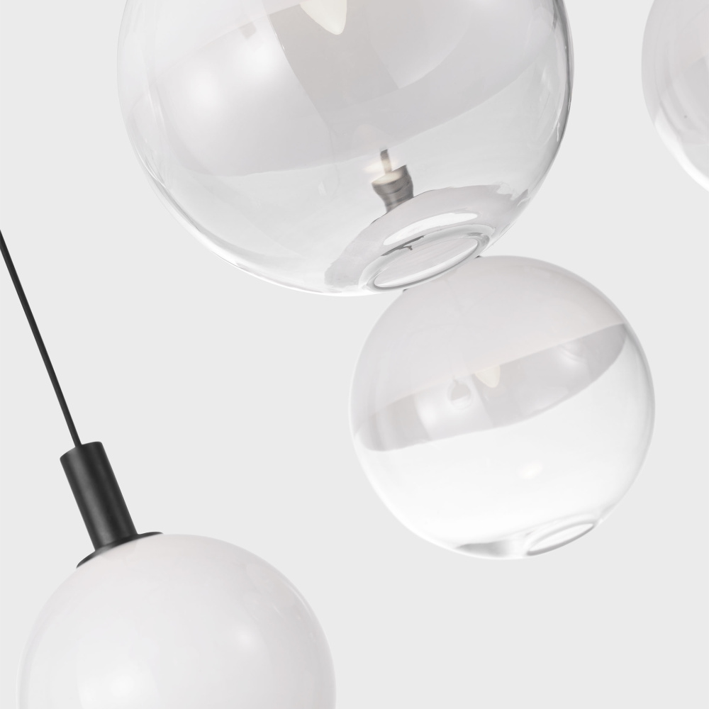The Torian collection by Sean Lavin draws inspiration from sculptural hanging mobiles. Multiple arms with fabric cords suspend beautiful glass globe shades with an ombre effect, transitioning from milk to etched clear glass. Ideal for entryways and dining rooms, the Torian chandelier will lend a sophisticated artistic touch to interior spaces.