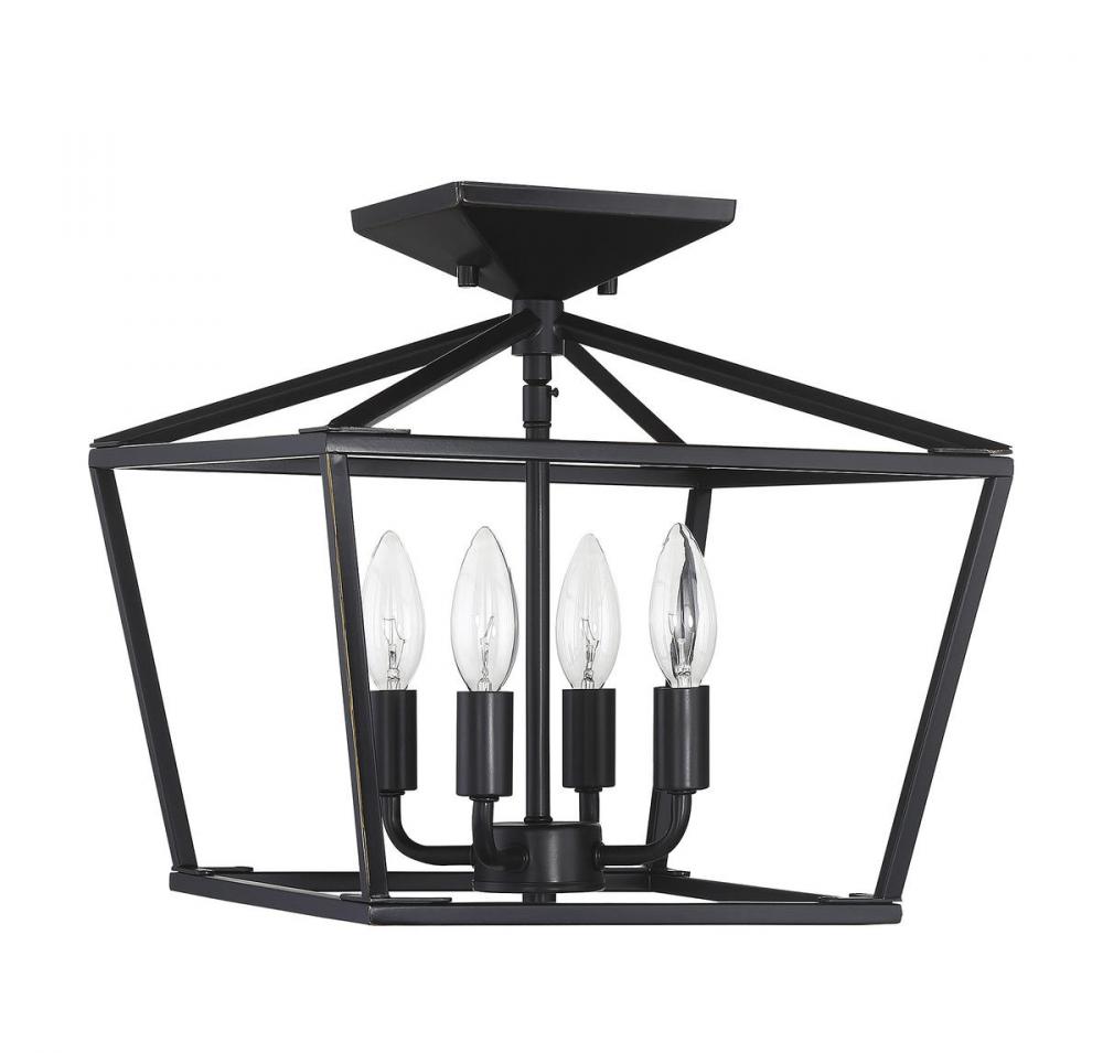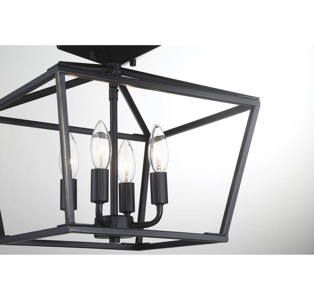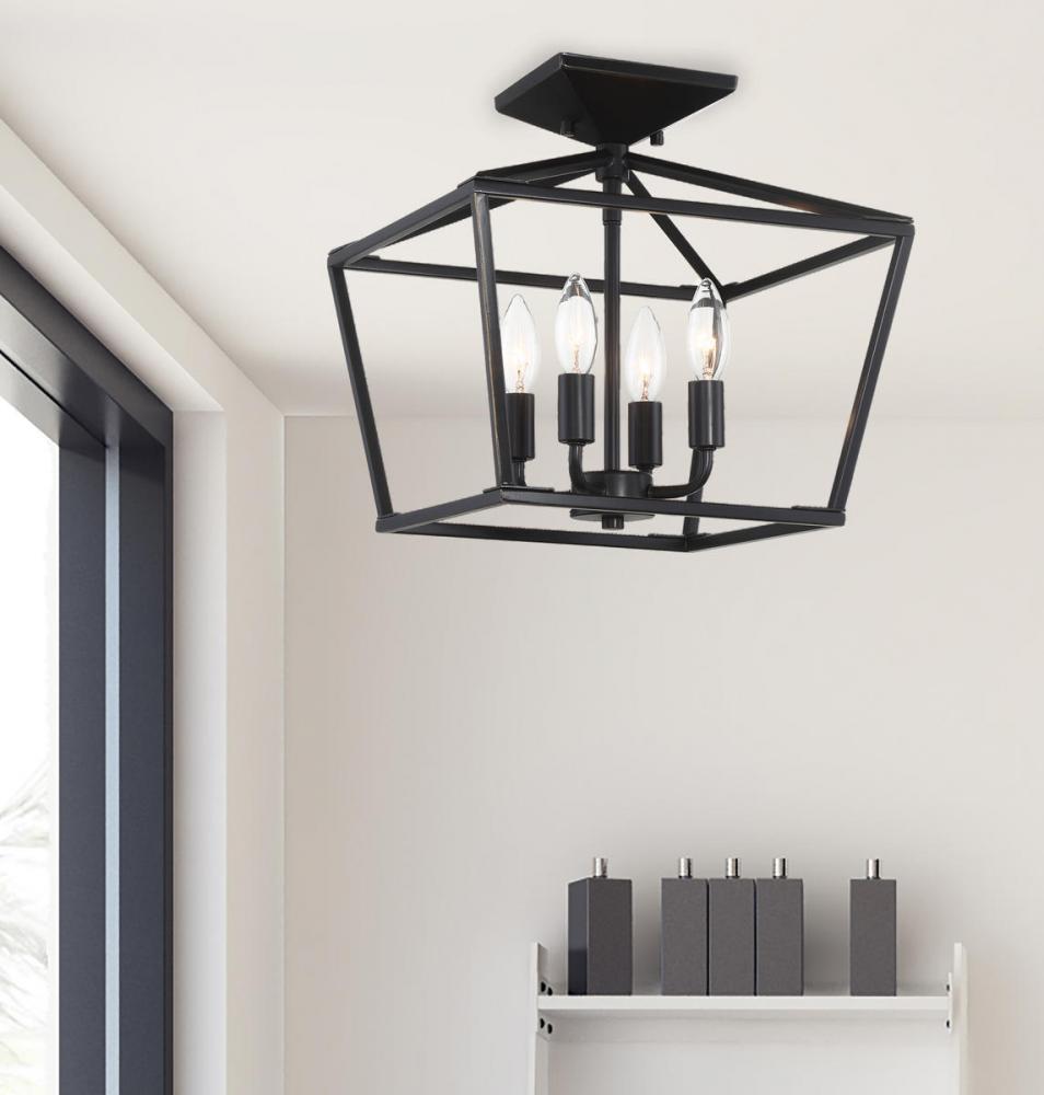 When you have a traditional aesthetic and want to inject a sense of modernism, choose this Townsend ceiling fixture. It’s a classic lantern style with the familiar vintage appeal of colonial or old English candle fixtures, but the open geometric frame and classic bronze finish create a delightful contemporary twist. This timeless quality blends very well with your traditional, transitional, bohemian, contemporary or modern farmhouse decor. Four lights within the open framework have metal candle covers and hold 60W candelabra size bulbs. The fixture is 13" wide and 13" high with a semi-flush mounting, making a superb fit for your dining room, kitchen, living room, entryway, bedroom, closet, family room, office, stairway or great room.