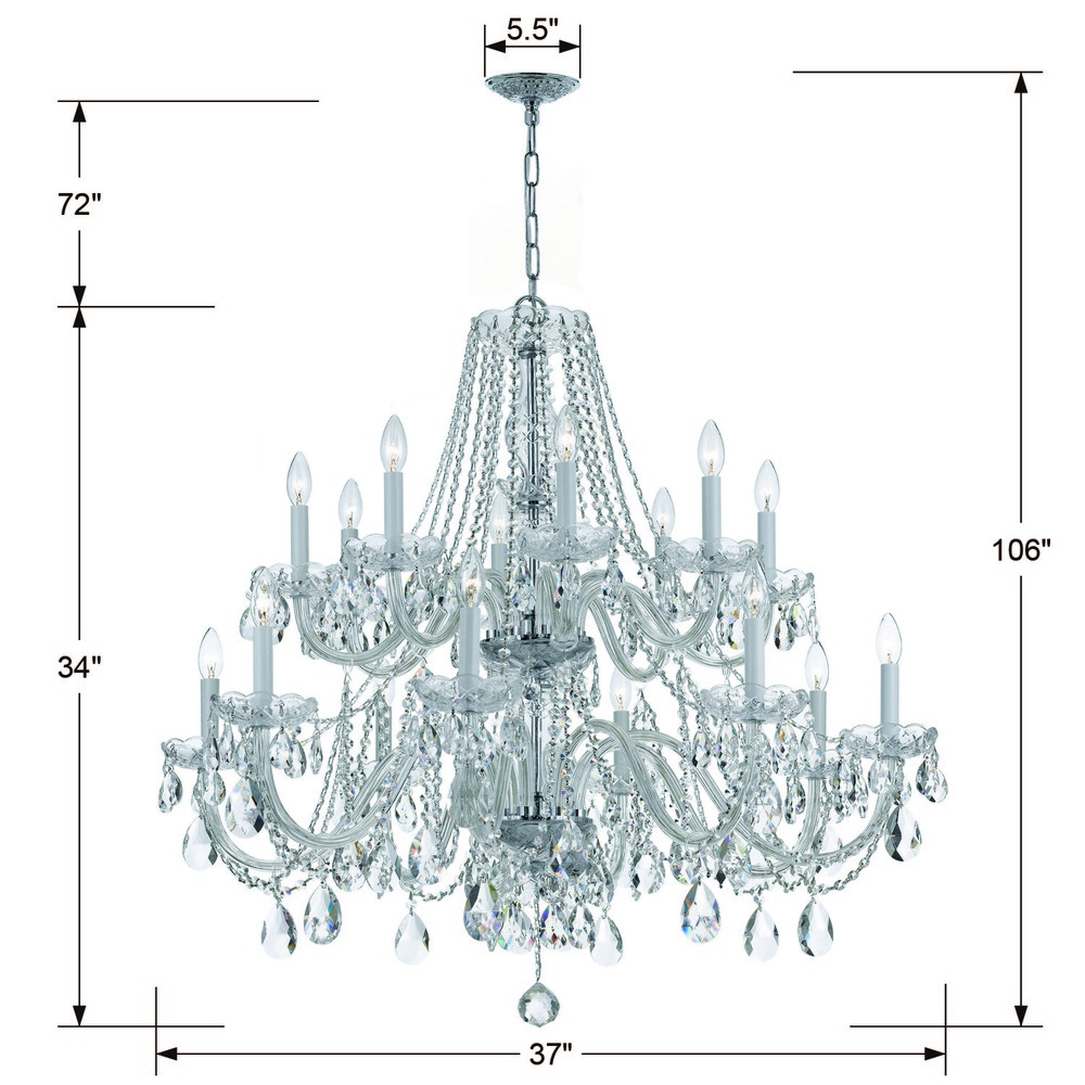 Traditional Crystal 37'' Hand Cut Crystal Polished Chrome Chandelier