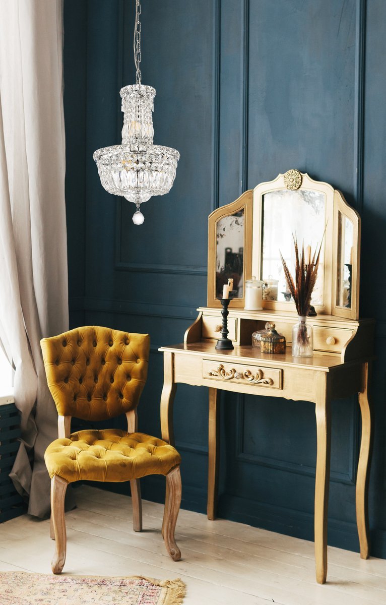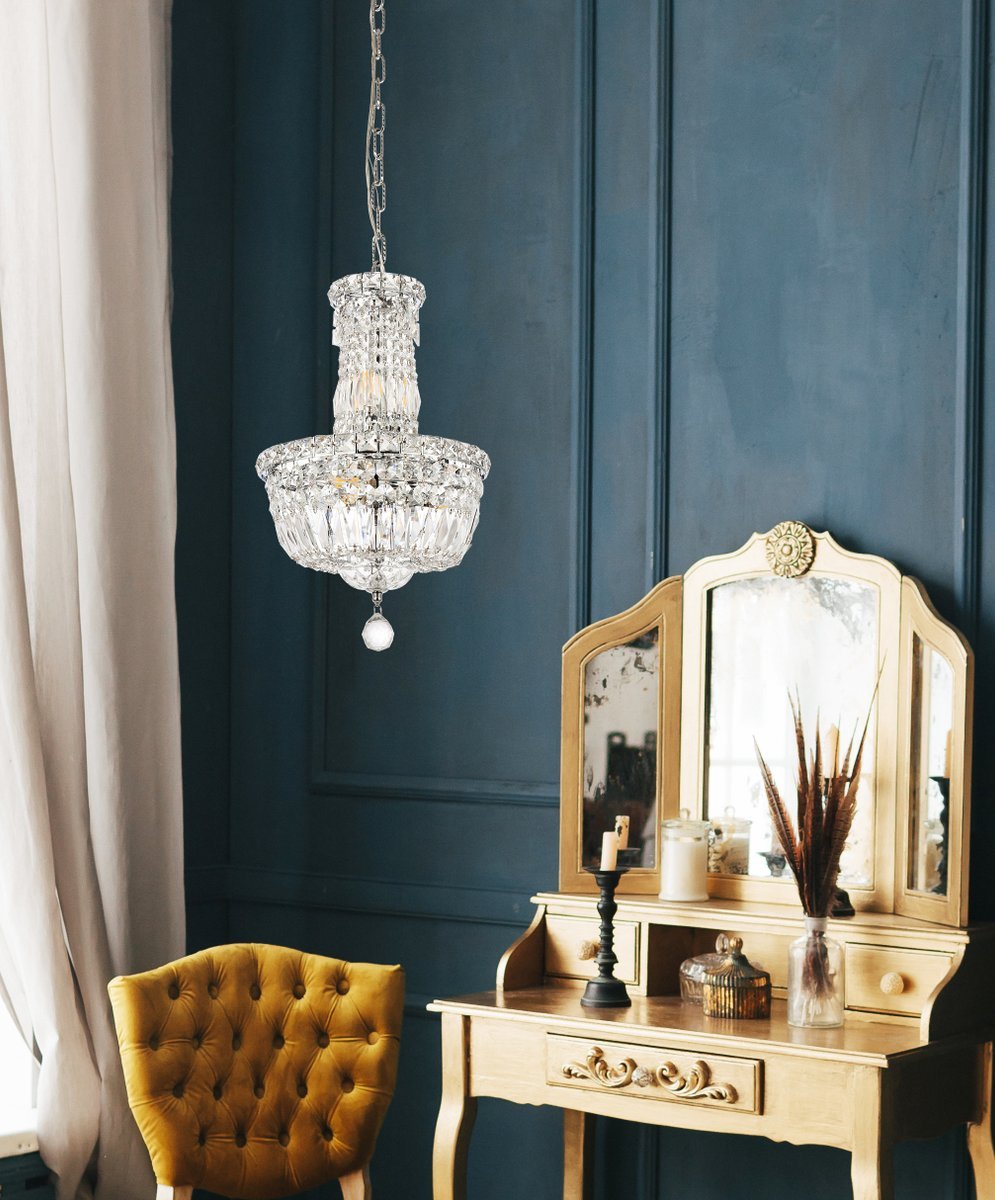The Tranquil collection of hanging fixtures is everything you could imagine in the most decadent of lighting for your home. Captivating and serene, the radiance of this masterpiece will make you feel like a waterfall of lustrous sparkle enraptures you. Chrome-finished bands of exquisite emerald-cut and baguette jewels are finished off with a mesmerizing spherical gem. These hypnotizing chandeliers and hanging pendants will add a touch of panache to your kitchen, dining room, foyer, or bedroom.
