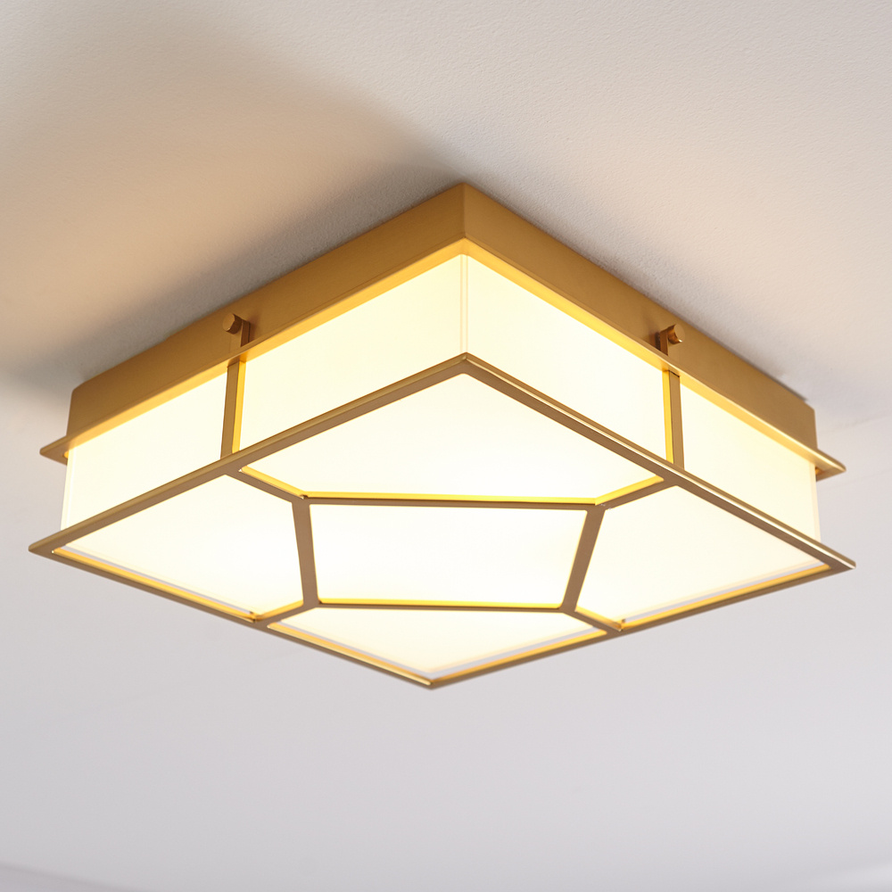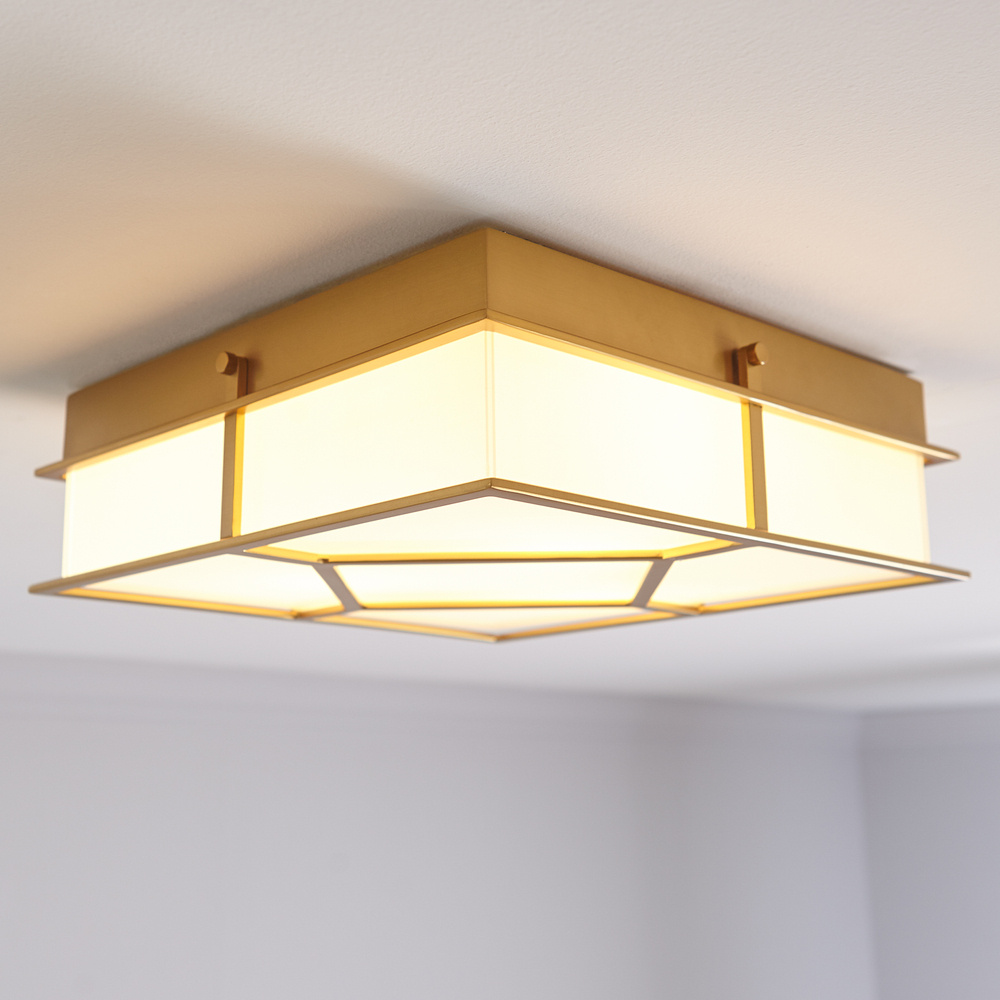 Named after a light-giving, the Alexa Hampton Transom three light flush mount fixture in burnished brass is inspired by the simple lines of mid-century modern design. The ornamental transom window typically placed above a door, features a square paneled glass frame and angular geometric design. With a frosted glass shade framed by steel, this fixture casts a soft gentle glow in any defined space in your home. The Transom flush mount is available in the burnished brass and polished nickel finish. Alexa Hampton is an industry force who honors tradition and commits to the future, providing smart, stylish, design-rich solutions for every aspect of the home. AH Alexa Hampton Collection features fresh takes on traditional looks, beautiful and unique hand applied finishes, and stunning thoughtful inspired pieces.