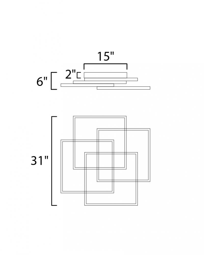 Multiple squares are layered in a geometric pattern to form an interesting lighting sculpture. Enclosed behind the white acrylic lens is a high power LED for even and economical illumination.