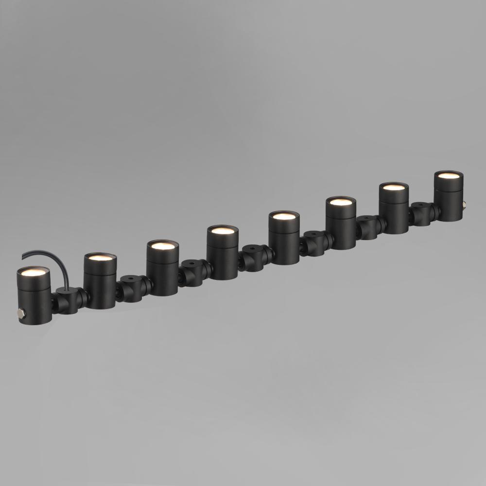 LED spot light modules are connected with rotating joints designed to strap along vegetation and posts. Available in groupings of three, five, and eight, each section is supplied with a fabric strap to easily wrap the products around various structures. Th