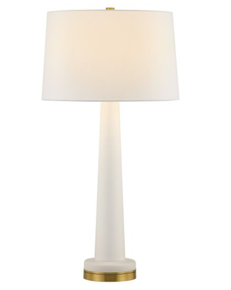The Savoy House Trenton 1-light table lamp was designed by Dann Foley, an award-winning interior designer known for elevated, timeless taste. Its frosted glass body, white fabric shade and Warm Brass finish come together to create a classic, graceful silhouette that suits a wide range of interiors. Trenton is 30.75" in height and 16" in width. It uses one standard size bulb of up to 100 watts. Bulb not included.