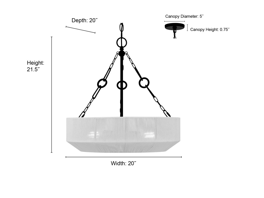 This light fixture is 20'' Dia. x 21.5''H.