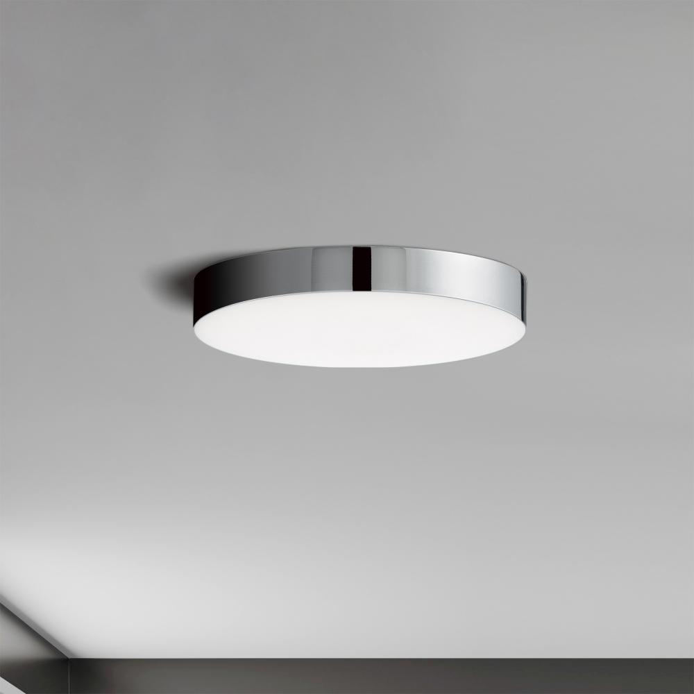 Thin discs of evenly illuminated LED create the impression of recessed lighting. The die-cast aluminum housings are available in White, Black, Satin Nickel, and Polished Chrome all with a thoughtfully recessed White polycarbonate diffuser. High efficiency