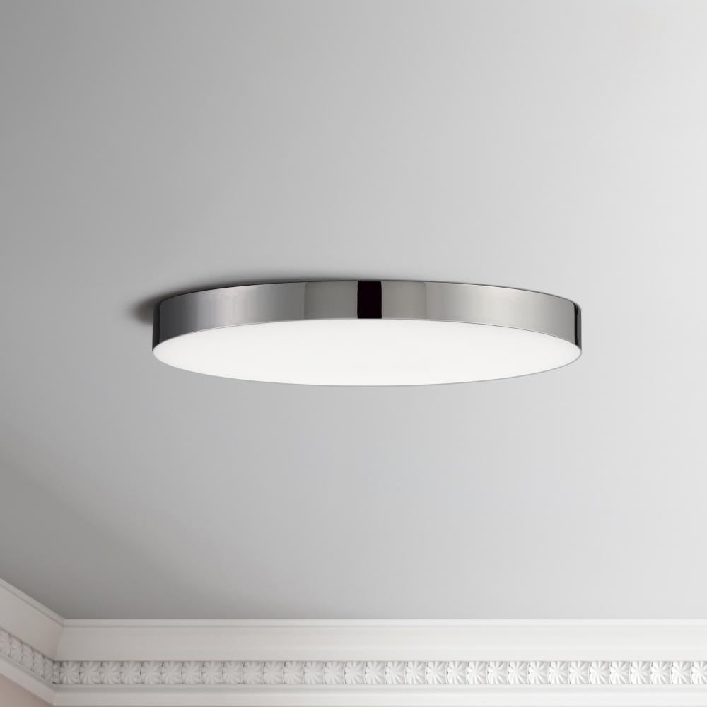 Thin discs of evenly illuminated LED create the impression of recessed lighting. The die-cast aluminum housings are available in White, Black, Satin Nickel, and Polished Chrome all with a thoughtfully recessed White polycarbonate diffuser. High efficiency
