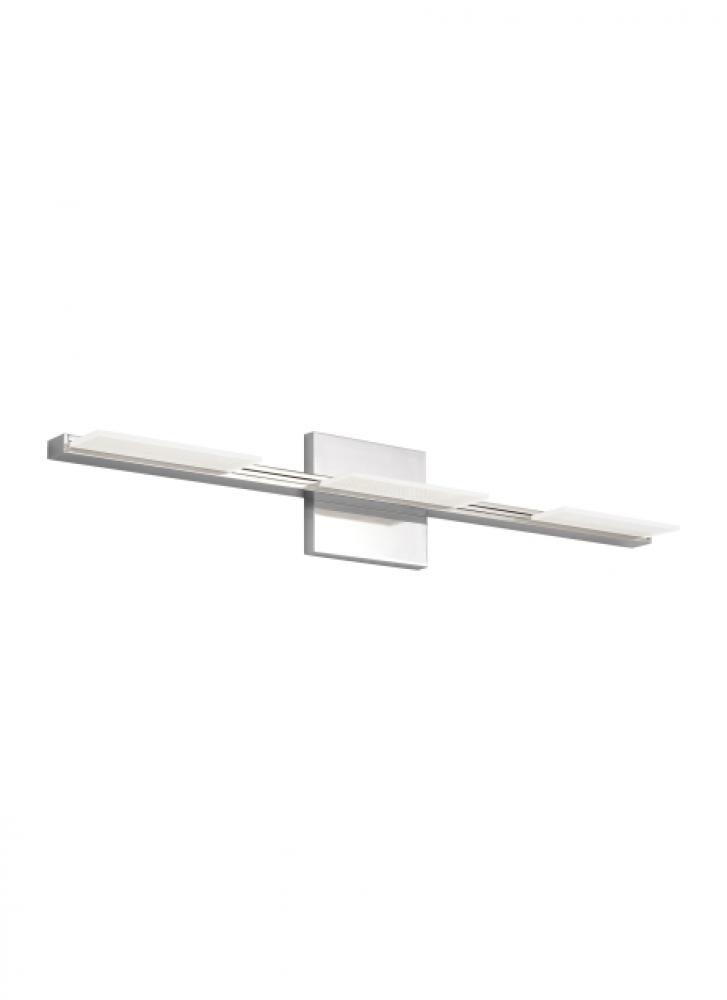 Tris by Sean Lavin for Visual Comfort Modern reflects simple geometric aesthetics that define this modern 3-light bath vanity fixture. Integrated LED light guide technology appears as frosted glass when off then illuminates across its surface when turned on. Spanning 25" in length and offered modern finishes, the Tris bath bar is a great way to light your bathroom or vanity. Lamping options are compatible with most dimmers. Refer to the Dimming Chart for more information.