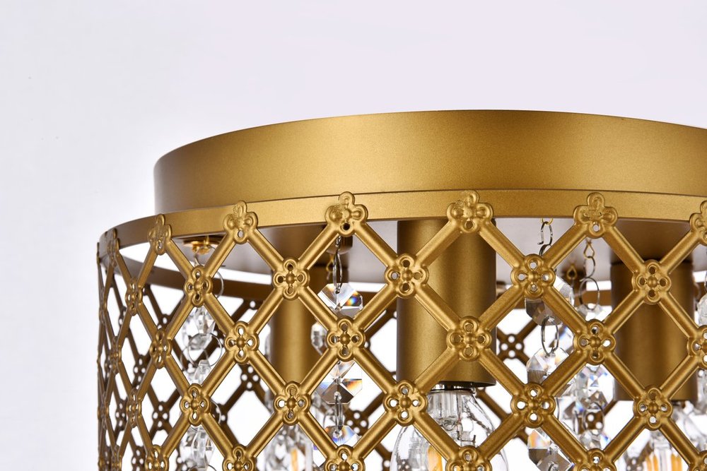 Enjoy the shimmering beauty of the Tully flush mount in a brass finish. The elegant lattice metal curtain allows for the hanging crystals to play and dance around the illuminating light, with larger crystals at the base peeking out to say hello. Lights on or off, this flush mount will surely make quite a statement in your home!