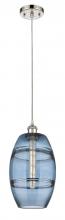 The Vas Series is meticulously handcrafted, showcasing exquisite glass band detailing. These bands are the result of a complex and delicate glassblowing technique, making each pendant truly one-of-a-kind. While the exterior of the glass shade has a sleek a