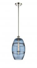 The Vas Series is meticulously handcrafted, showcasing exquisite glass band detailing. These bands are the result of a complex and delicate glassblowing technique, making each pendant truly one-of-a-kind. While the exterior of the glass shade has a sleek a