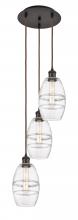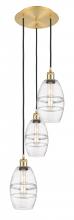 Vaz - 3 Light - 12 inch - Antique Brass - Clear Shade - Cord hung - Multi Pendant