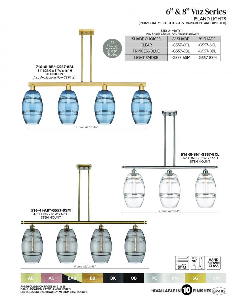 Innovations Lighting 516-3I-AB-G557-6CL - Vaz - 3 Light - 36 inch - Antique Brass - Stem hung - Island Light