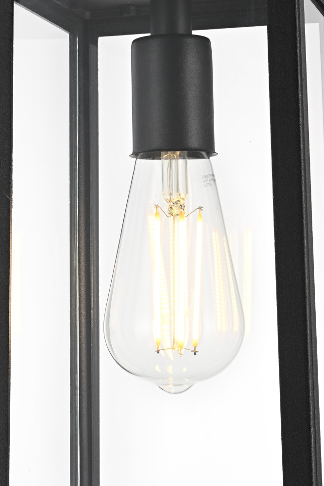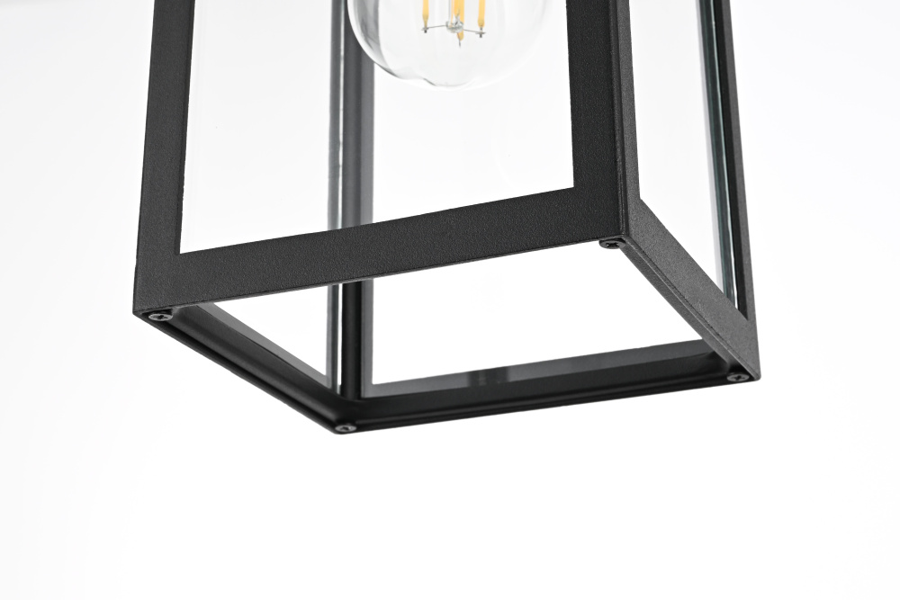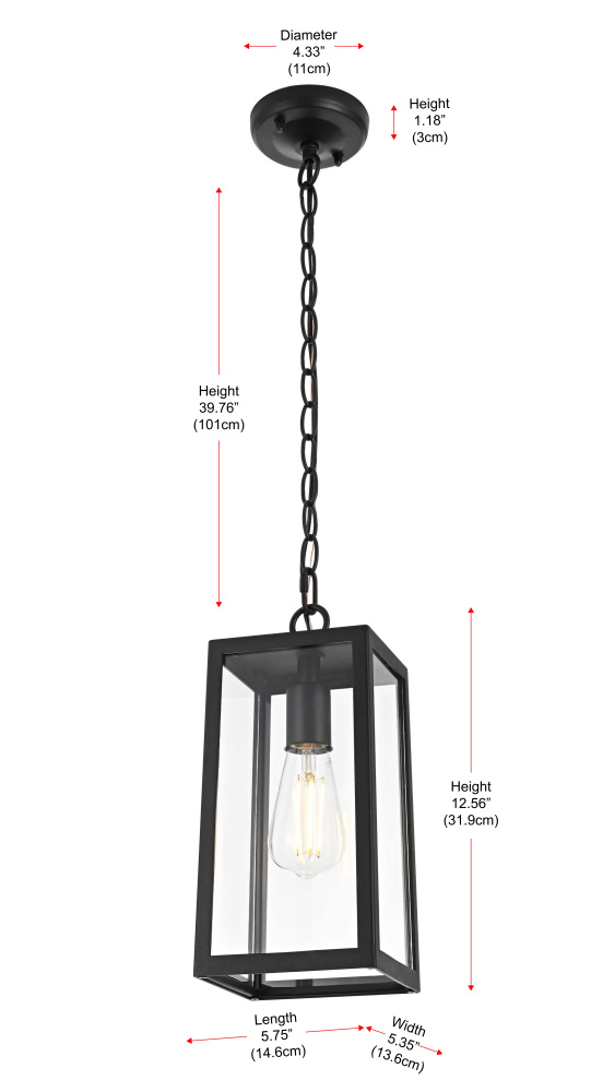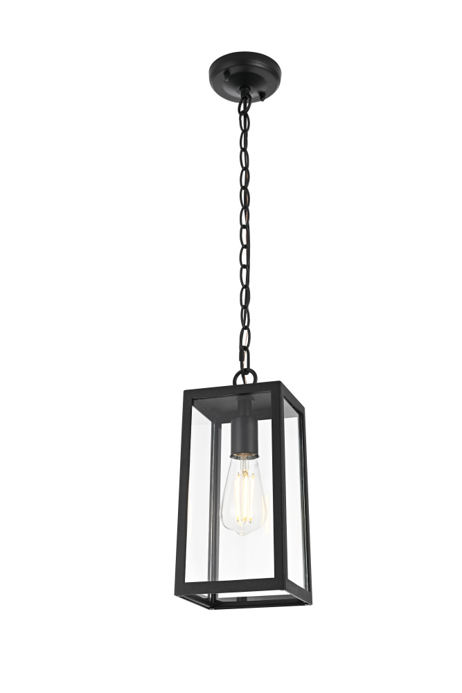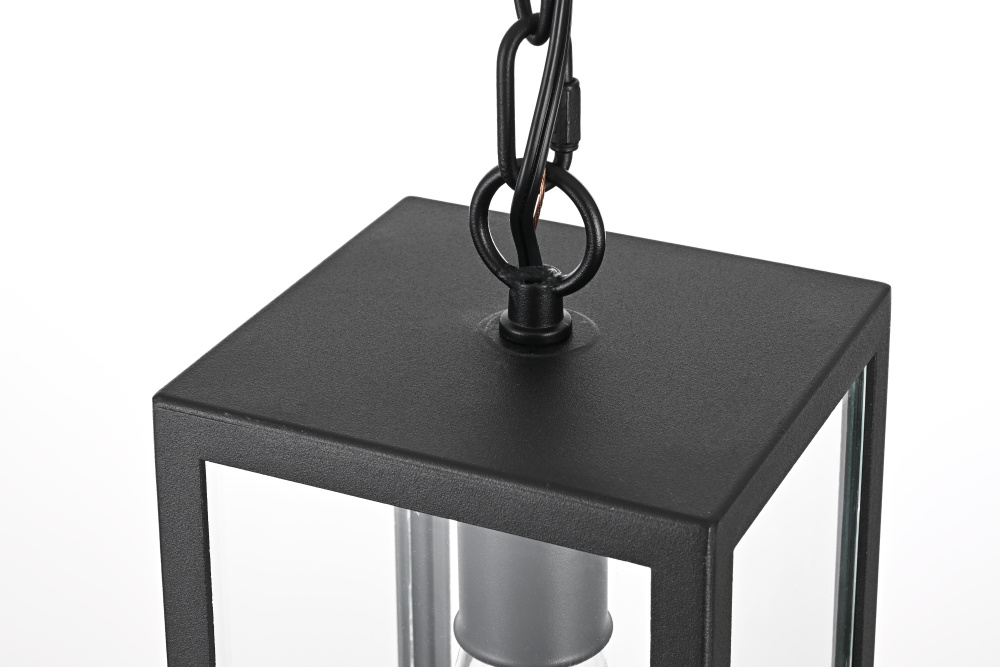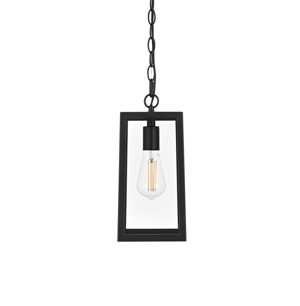This outdoor pendant light features a tapered rectangular frame with clear glass panels, creating a clean and structured appearance that works well in modern, transitional, and traditional spaces. The black-finished iron and aluminum frame offers durability while allowing the E26 medium-base bulb (40W max, not included) to be fully visible for an open, airy feel. Designed for convenience, the open-bottom frame makes bulb replacement quick and easy. The adjustable 39-inch chain allows for flexible hanging heights, making it suitable for porches, patios, and covered entryways. Dimmable and ETL damp Rated, this pendant light is both functional and stylish, bringing a defined, structured look to any outdoor setting. Built with marine-grade, corrosion-resistant aluminum, this sconce withstands coastal conditions for long-lasting durability.