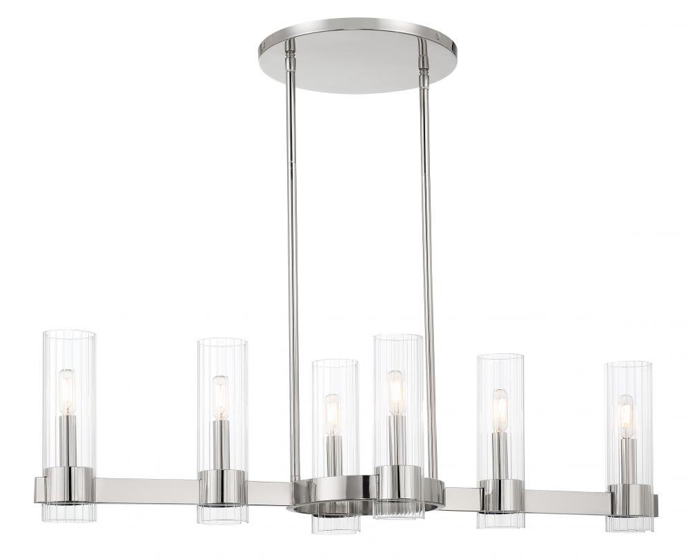6 Light Island in Chrome with Clear Ribbed Glass